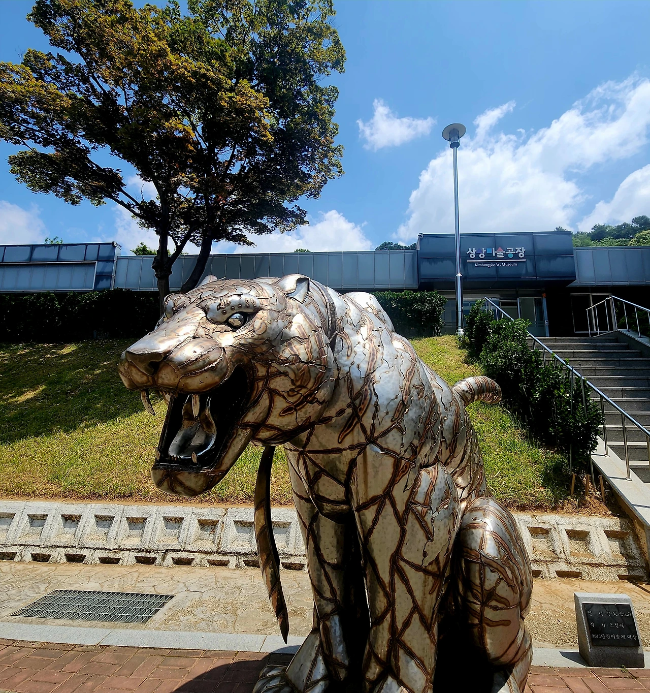 김홍도 그림 중에는 '소나무 아래 호랑이'가 있다. 미술관 입구에 들어서자 커다란 청동 호랑이가 수호신처럼 미술관을 지키며 우리를 반겨주었다.