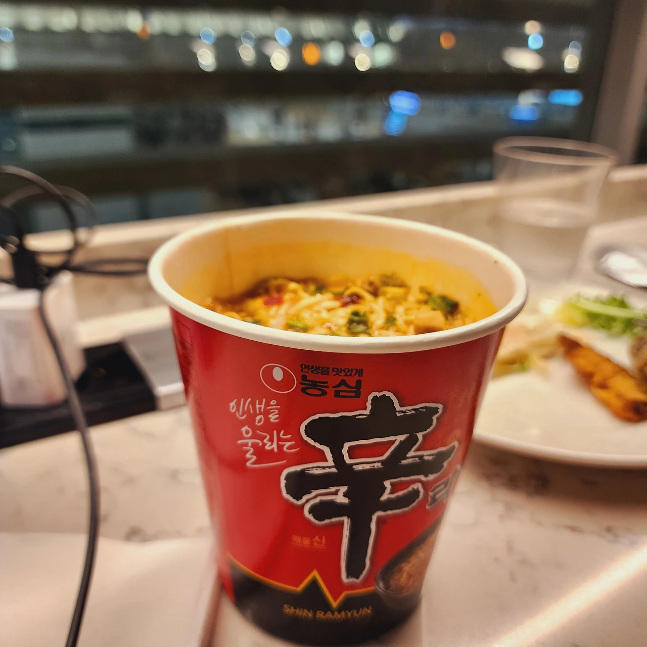 평소에 잘 먹지도 않던 신라면을 공항 라운지에서 흡입