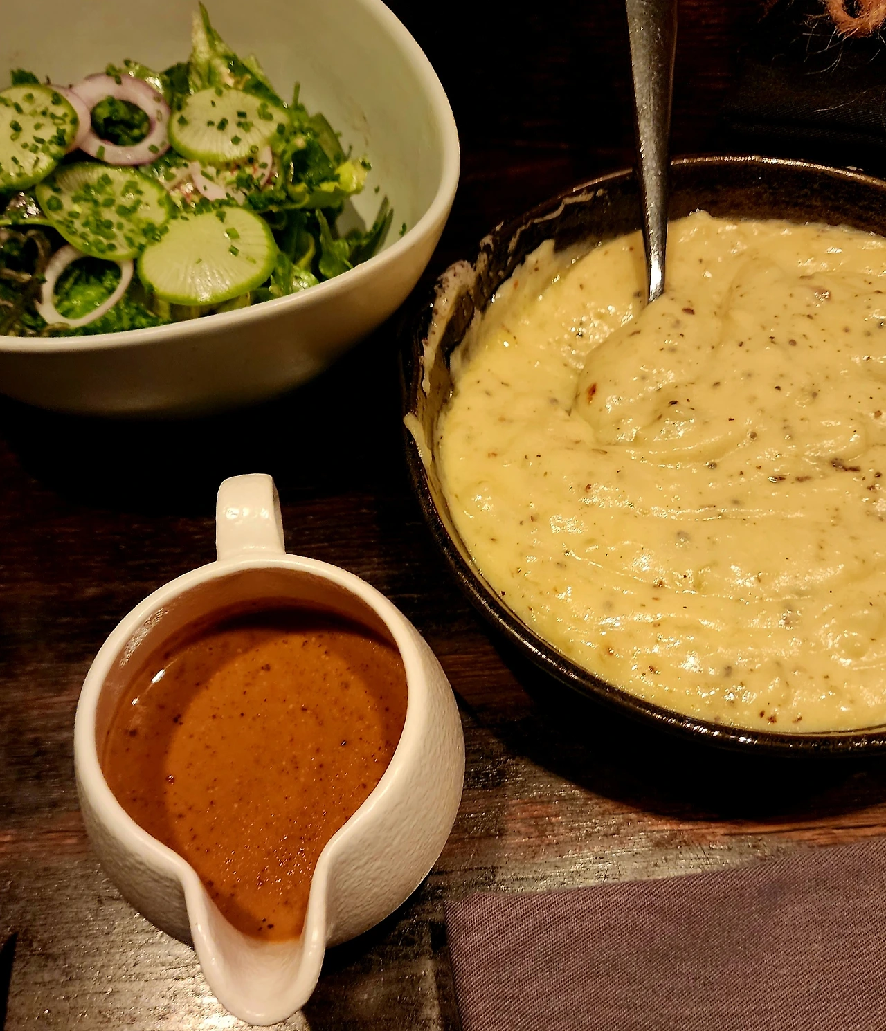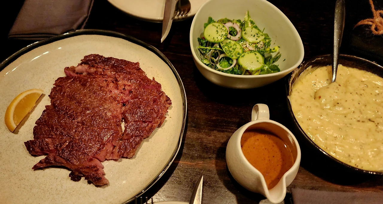 우리는 시그니처 메뉴 매쉬포테이토와 스테이크로 소고기를 양이 좀 많은 것을 주문했더니 둘이 먹기에 배가 불렀다.