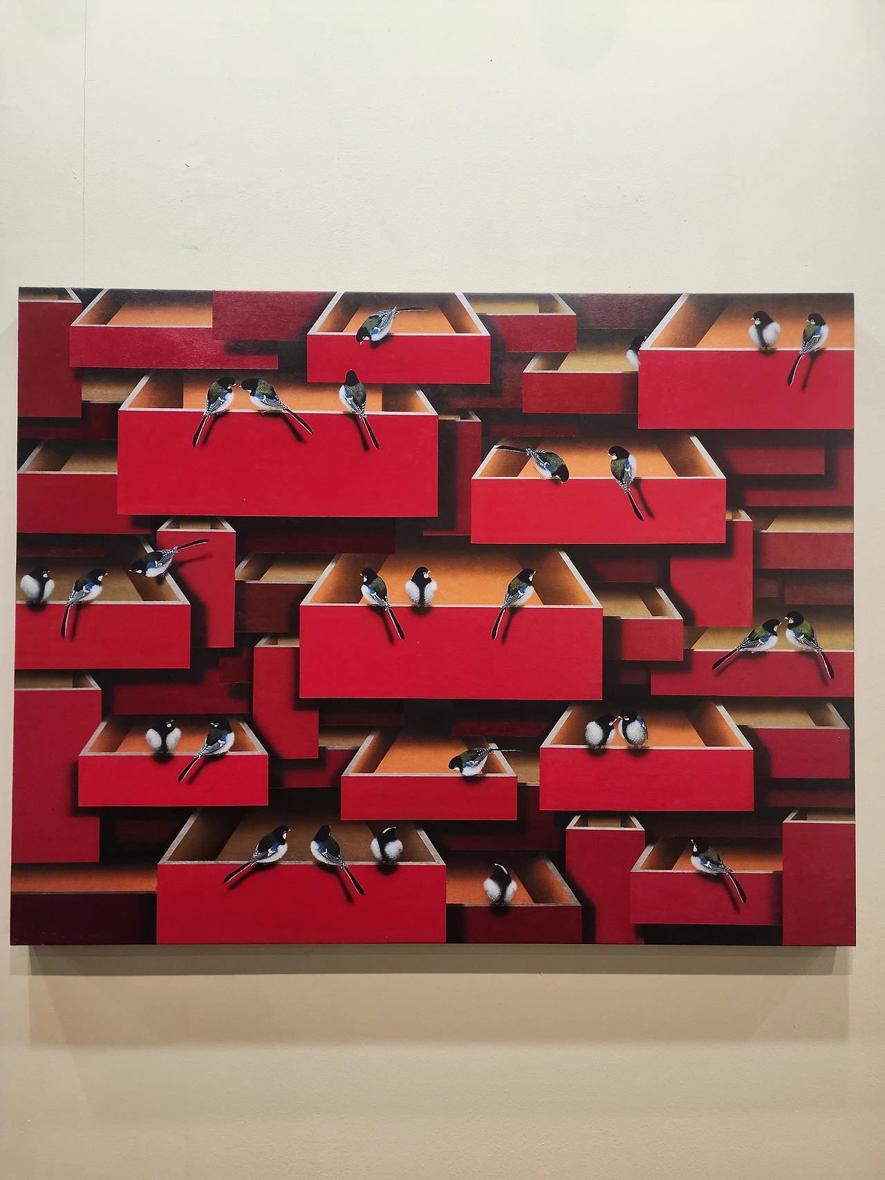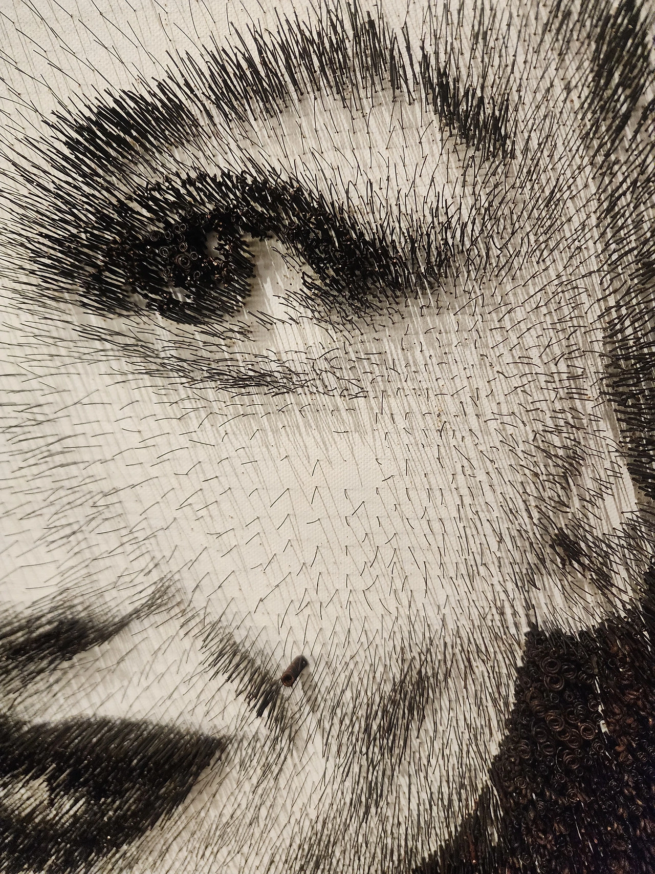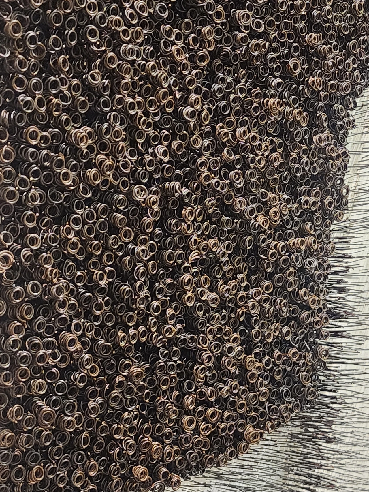 자세히 보니 수천 개의 침을 꽂아 만든 작품이다.