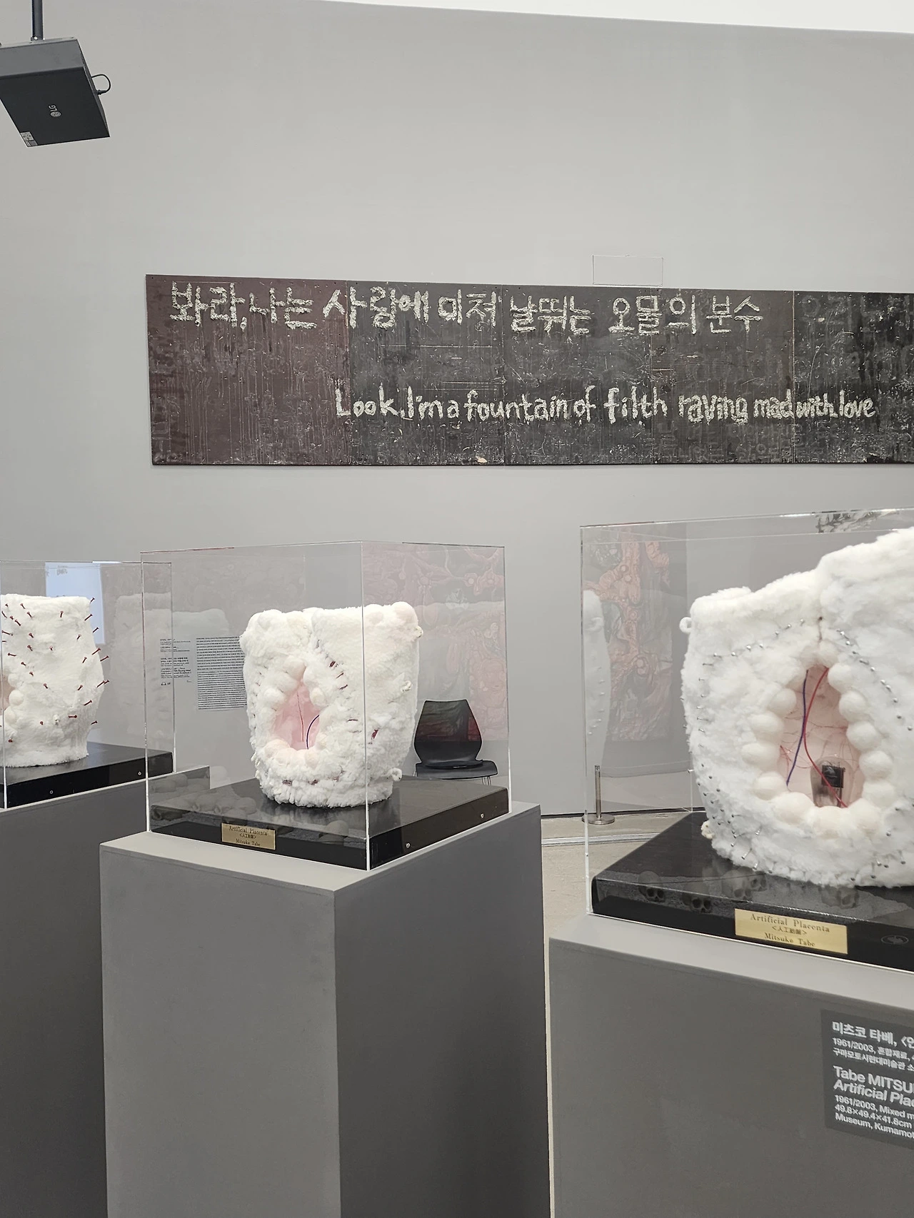 미래를 항하여>와 마녀>는 1988년 우리 봇물을 트자: 여성 해방 시와 그림의 만남에서 전시됐다. 이 전시는 1980년대 사회학자와 여성학자 및 문인을 주축으로 대안적인 여성주의 문화운동을 펼친 그룹 '또 하나의