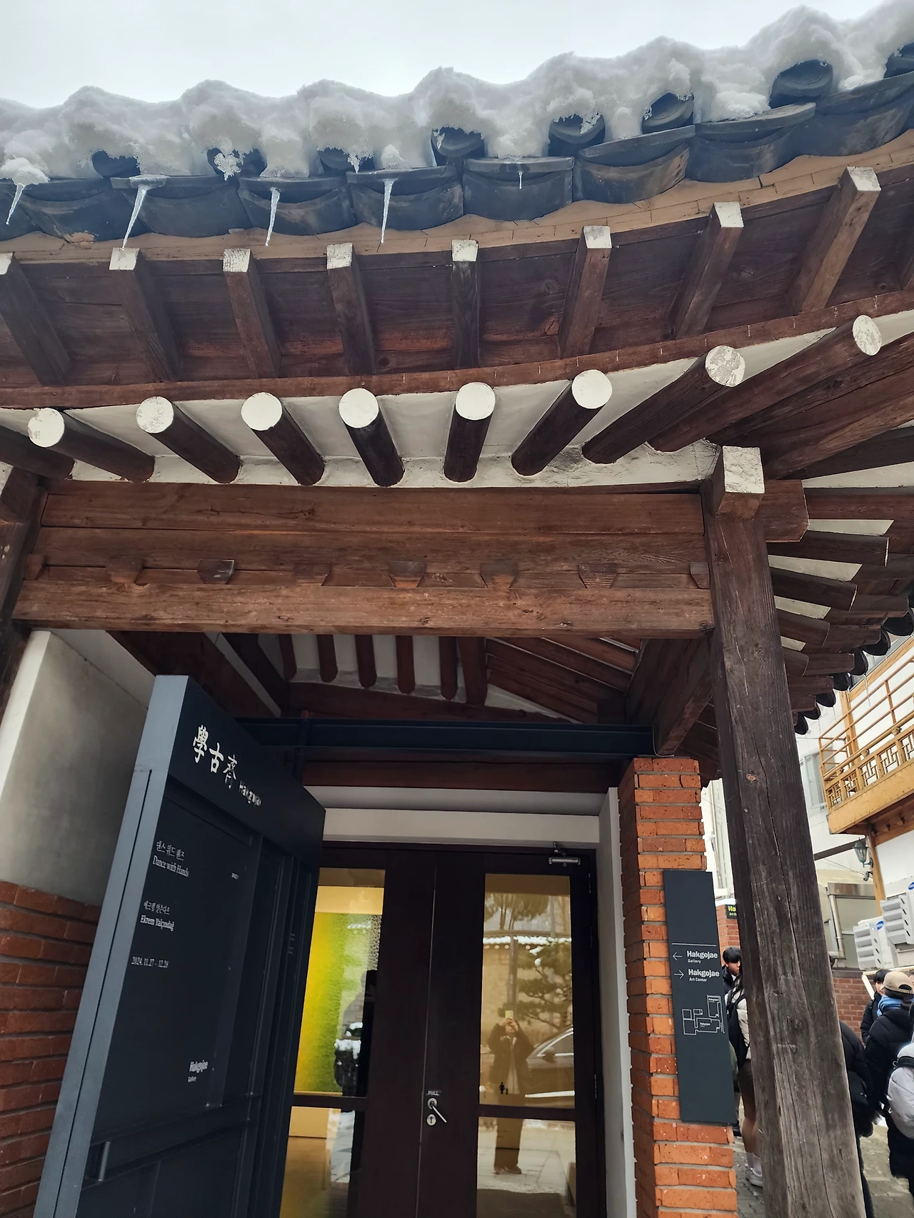 처마는 한겨울이지만 안의 전시회는 따뜻한 봄날이다.