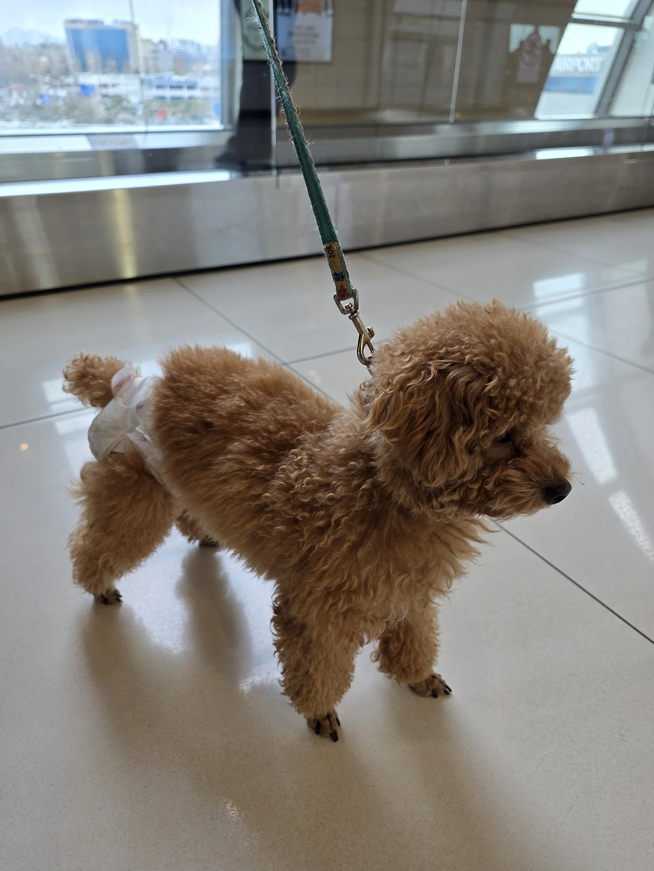 아기 강아지가 예쁜 승무원 언니들의 사랑을 독차지한다.