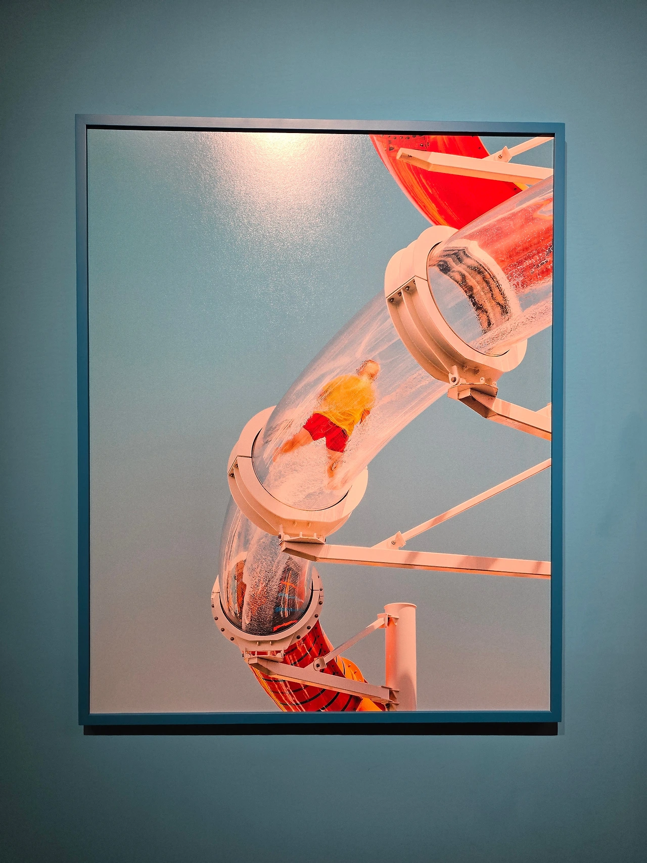 선베드로 즐비한 수영장과 워터파크, 수평선과 나란한 갑판과 호텔의 객실까지. 요시고가 포착한 크루즈 관광객들의 모습 속엔 작가 특유의 유머코드가 숨겨져 있다. 바다 위에서, 바다와는 거리가 먼 레저처만을 즐기는 상황이