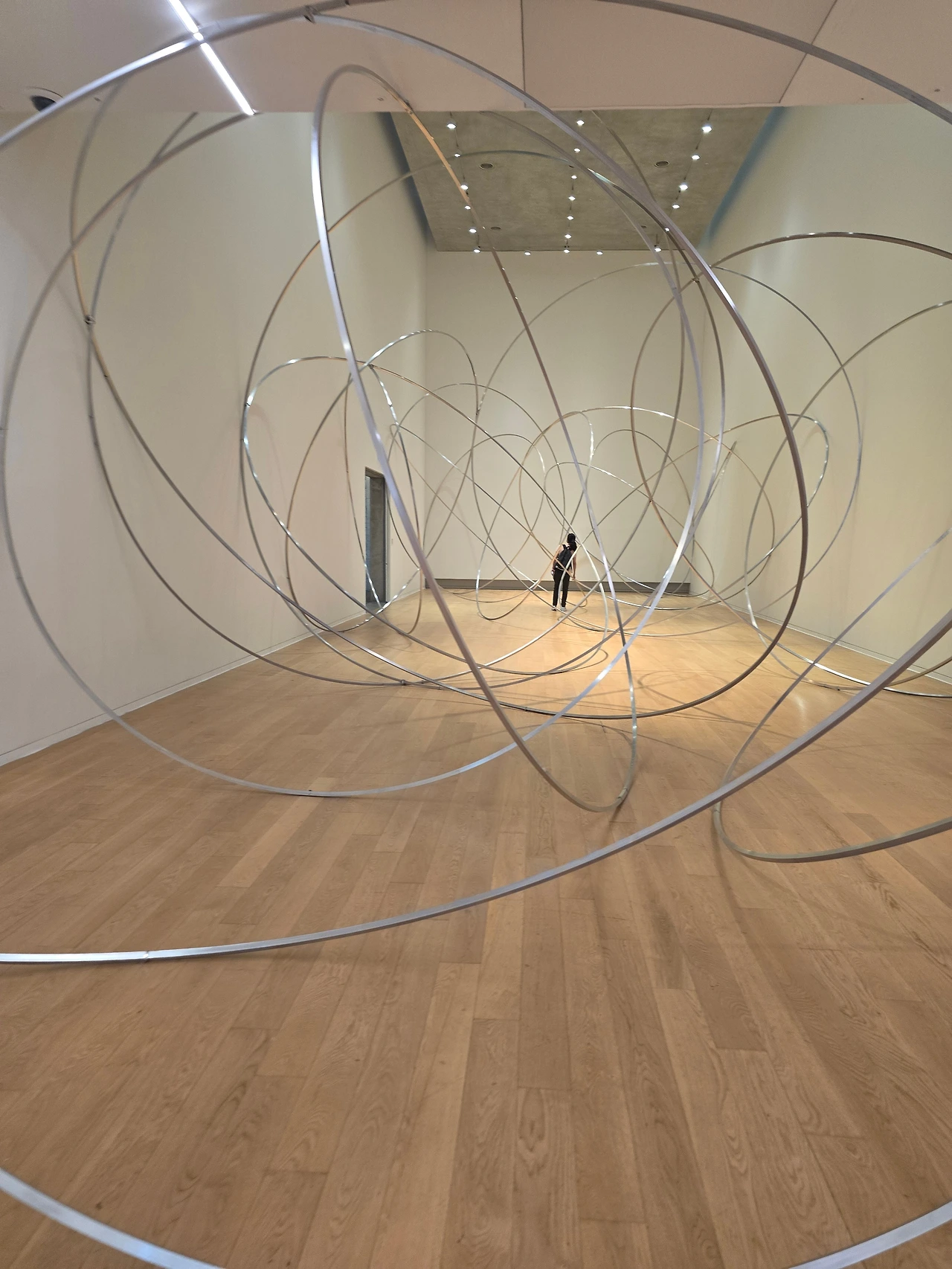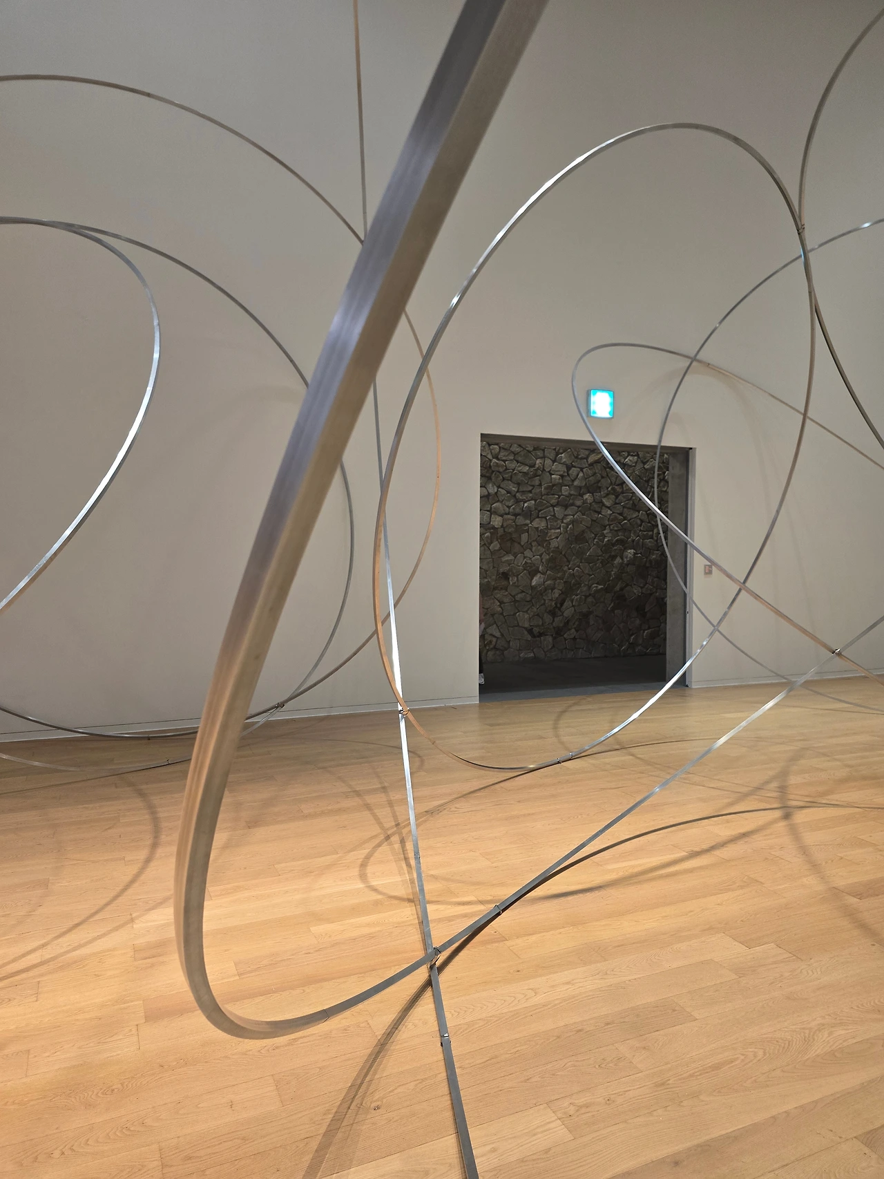 수십 개의 스틸 원형 구조물로 이루어진 설치작품으로
