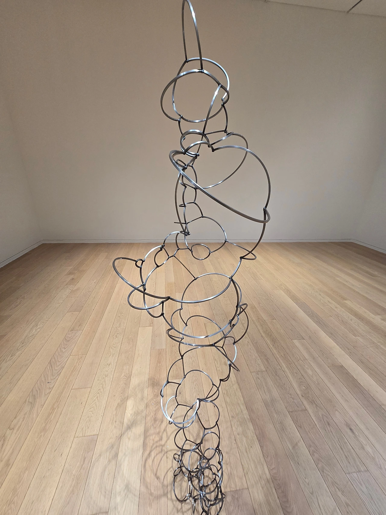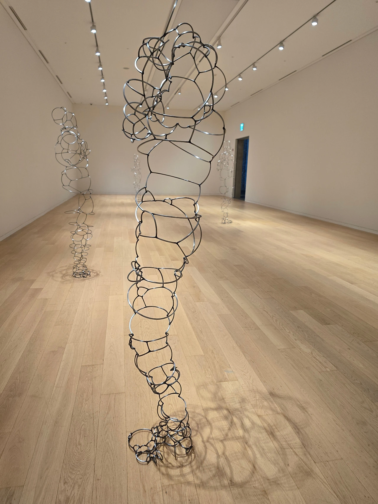 섬세한 <liminal Field > 시리즈의 조각들, 나선형의 소우주를 제시하는 <Crbit Ficld Il>, 빛과 어둠을 담은 드로잉 시리즈까지 전시의 모든 작품이 곰리의 40여 년