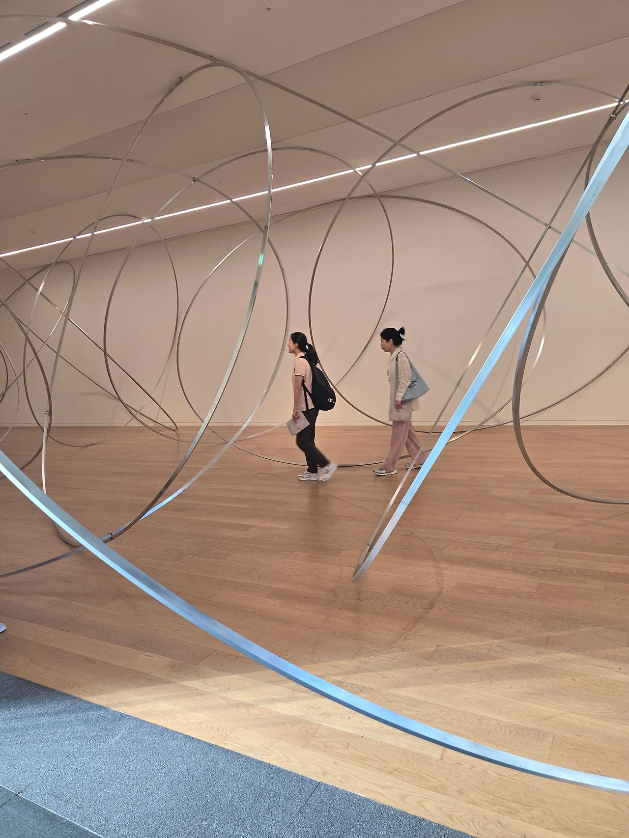 전시장의 직선형 구조와 극적인 대비를 이룬다.