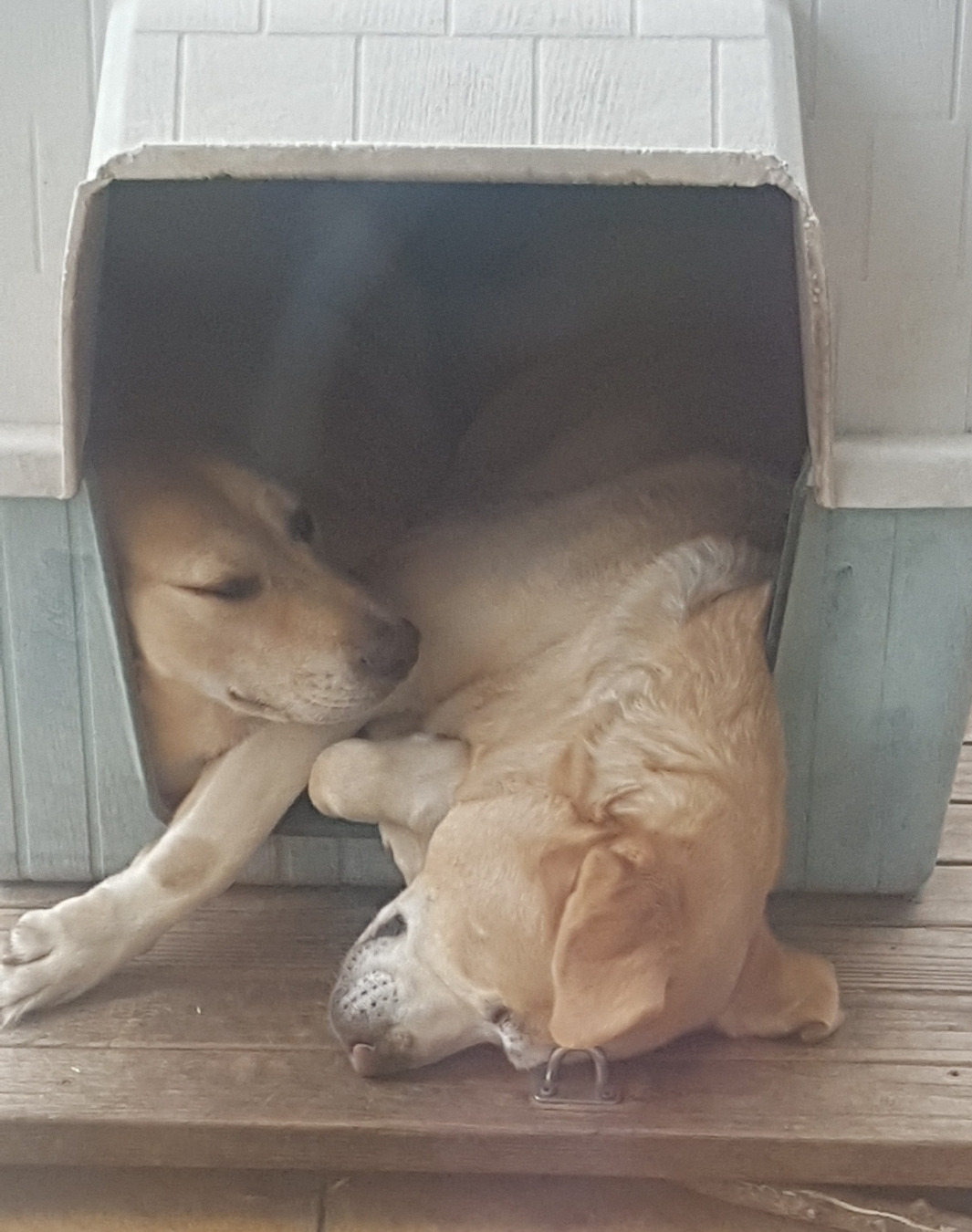 거실 창으로 보이는 시드니와 파블로는 제법 커다란 덩치에도 불구하고 각자의 집이 있는데도
