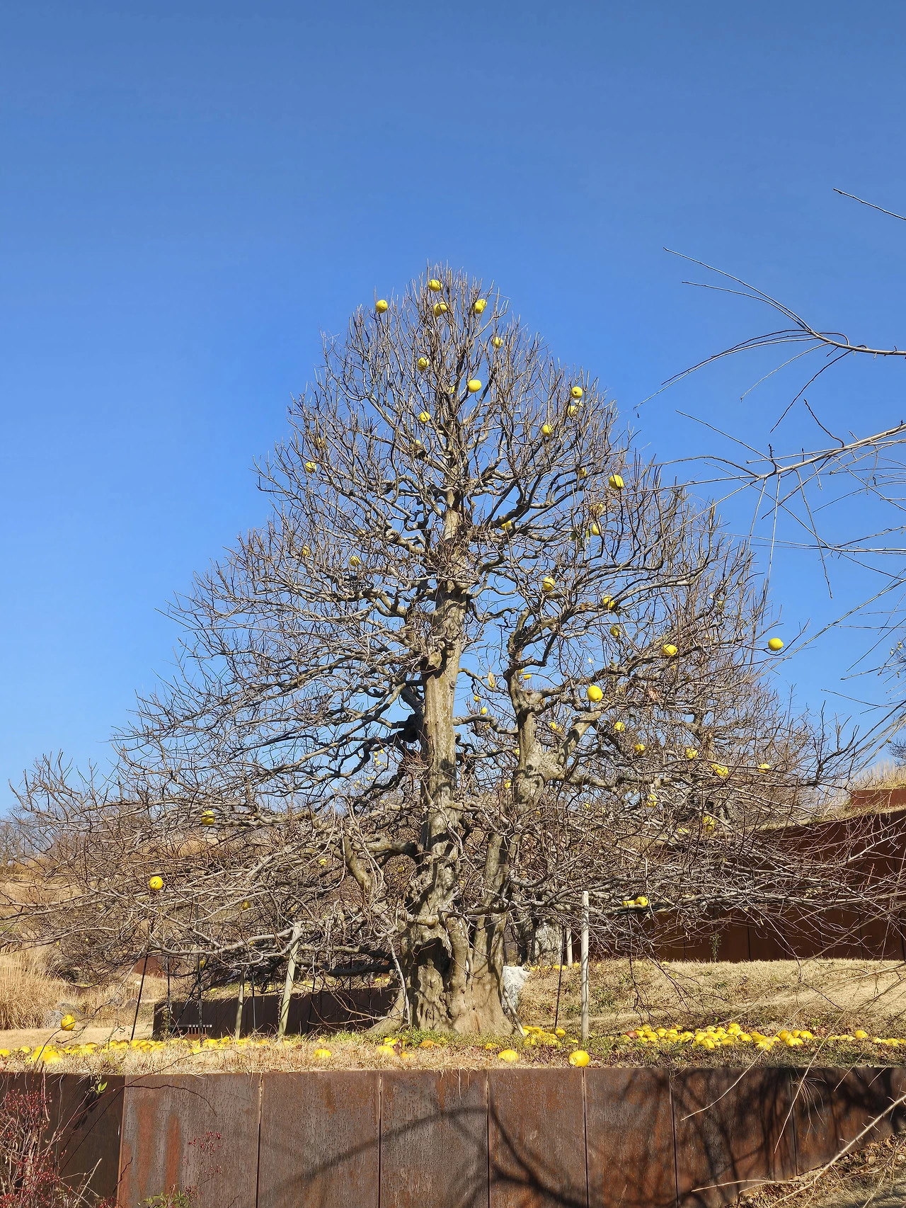 바람과 서리, 인간의 목말을 견뎌낸 반천년 모과나무들이 사유원의 심장부를 찾아왔습니다. 한때 나무등치로