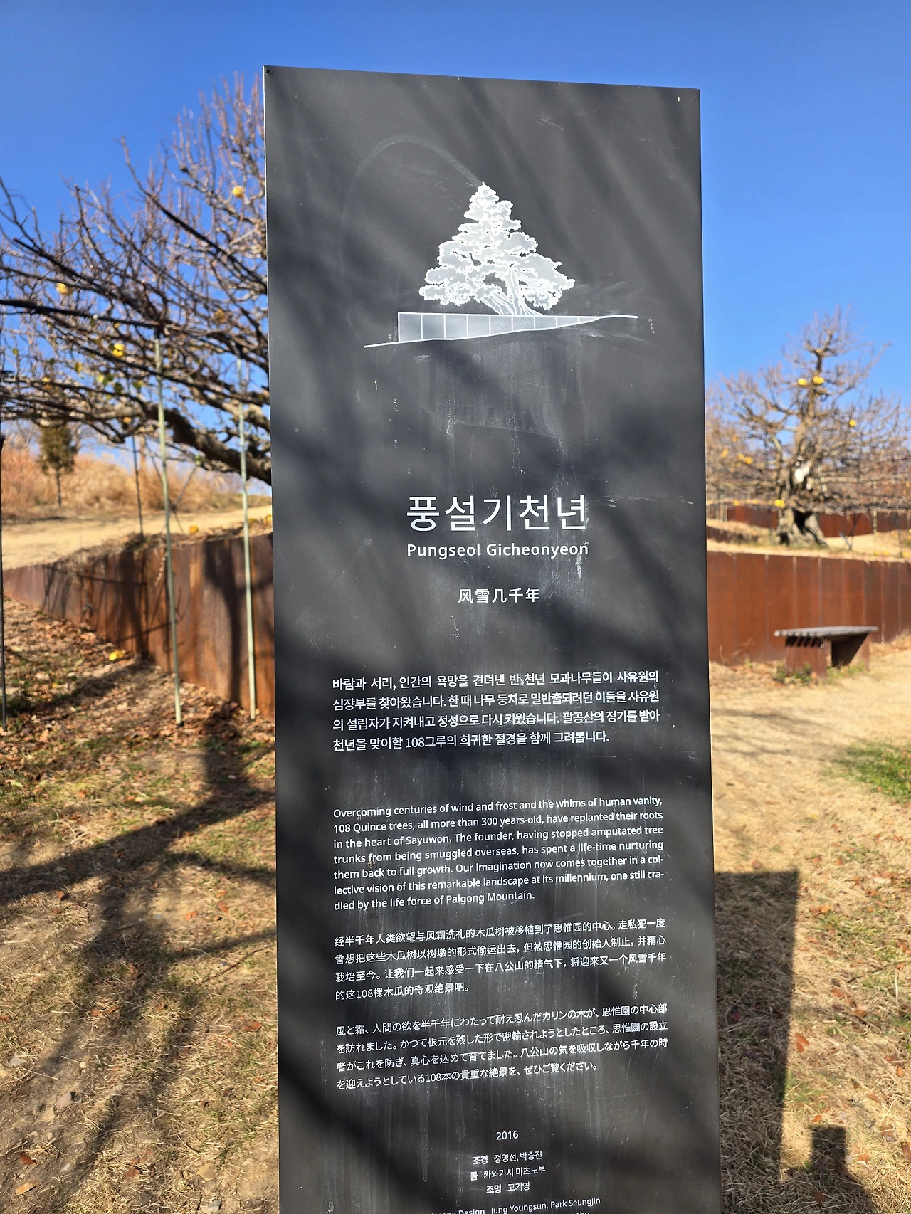 밀반출되려던 이들을 사유원의 설립자가 지켜내고 정성으로 다시 키웠습니다. 팔공산의 정기를 받아 천년을 맞이할 108그루의 회귀한 절경을 함께 그려봅니다.