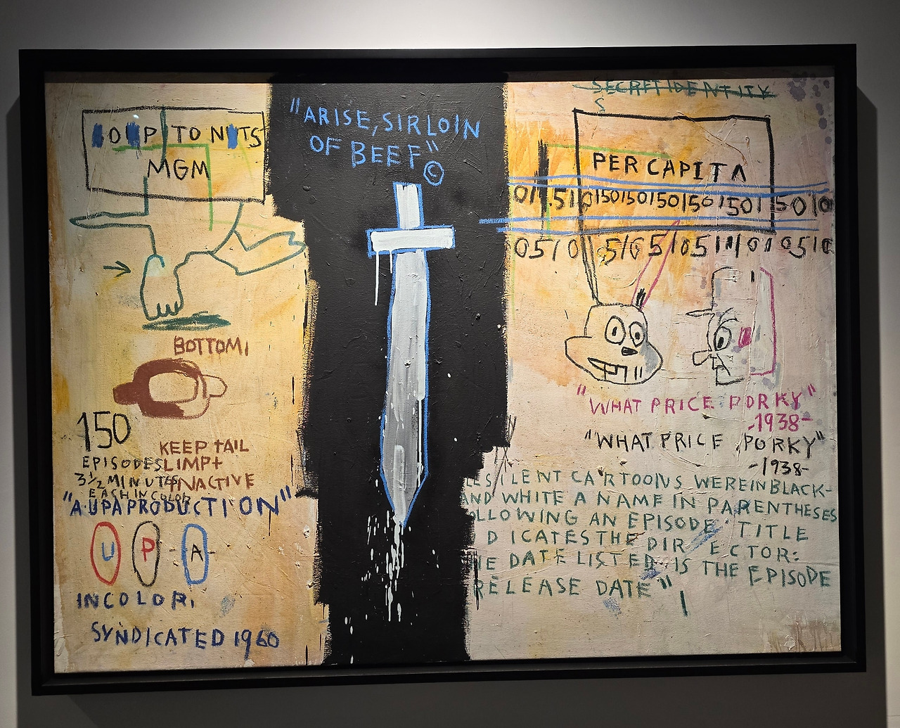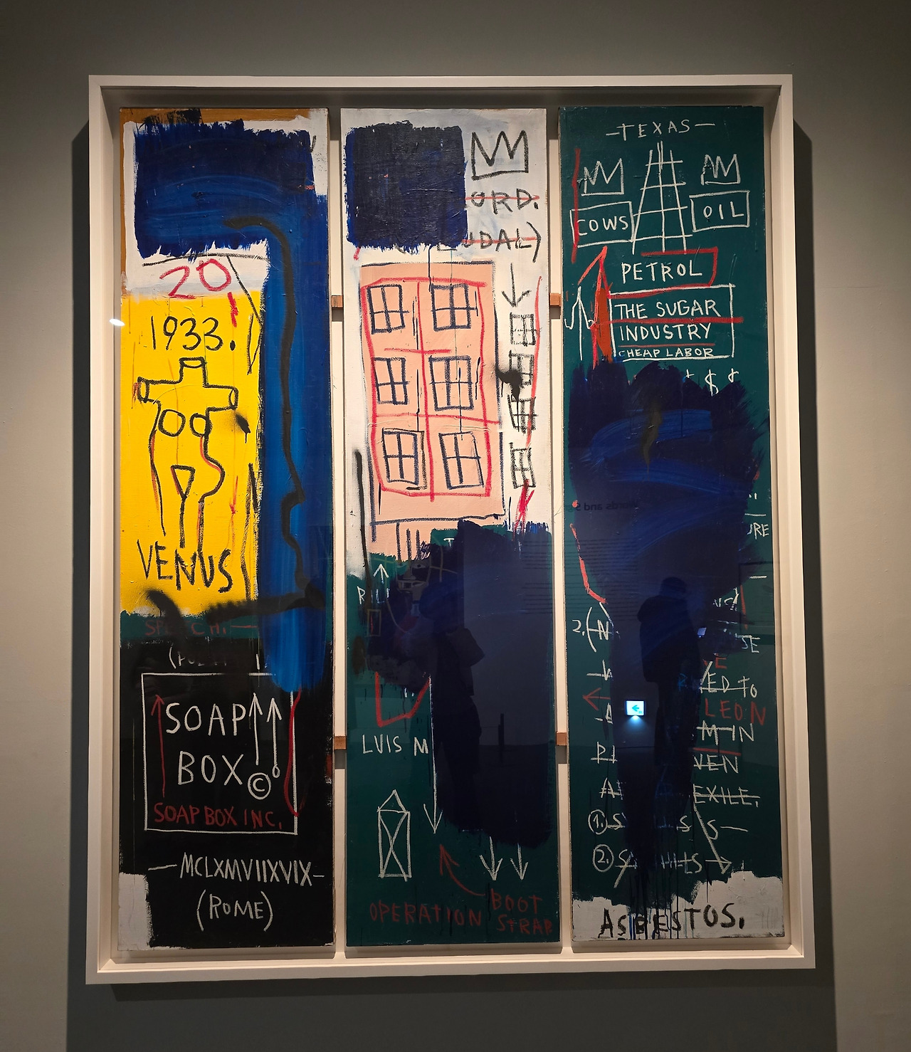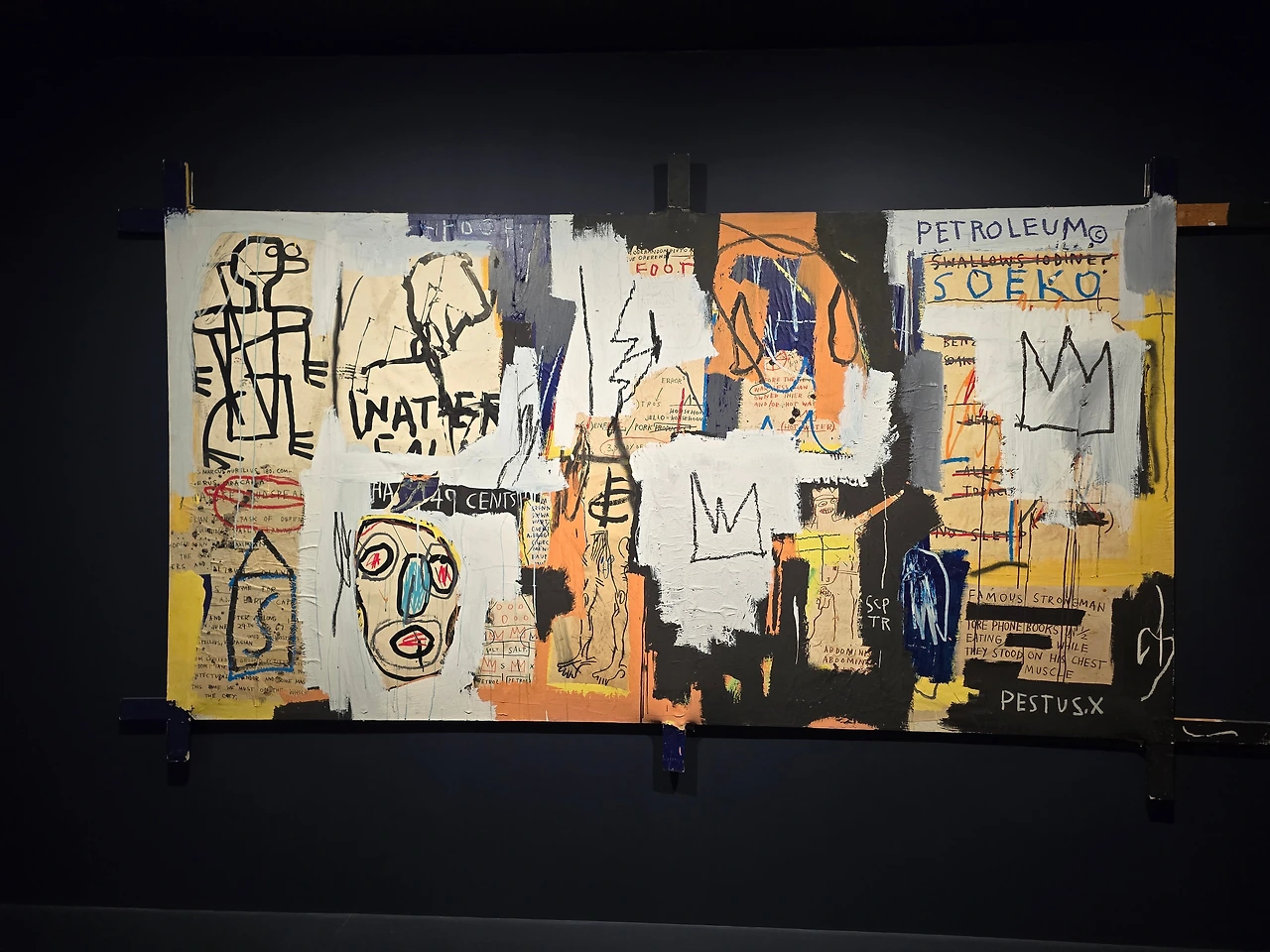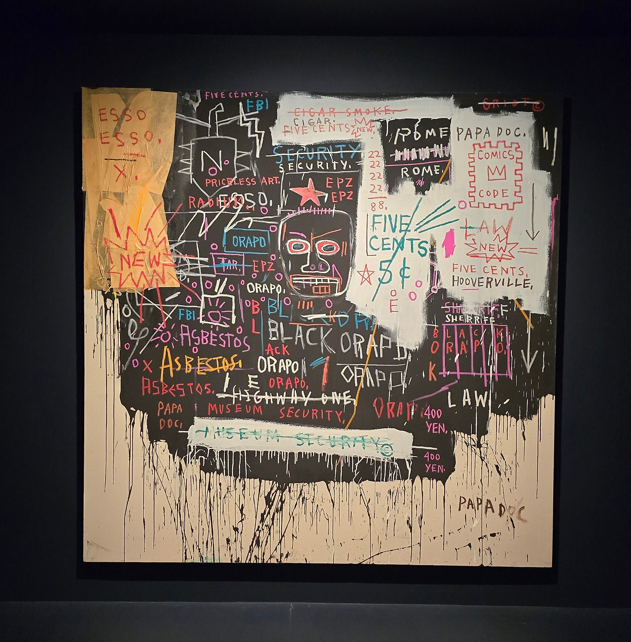<뮤지엄 사시큐리티(브로드웨이 붕괴)>는 바스키아의 전형적인 예술적 접근을 보여주며, 그의 사유 과정을 시각적으로 보여준다.