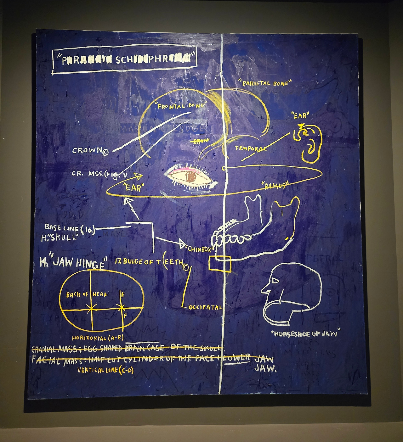 바스키아 작품 전반에서 반복적으로 등장하는 모티프 중 하나는 해골과 '가면이다.