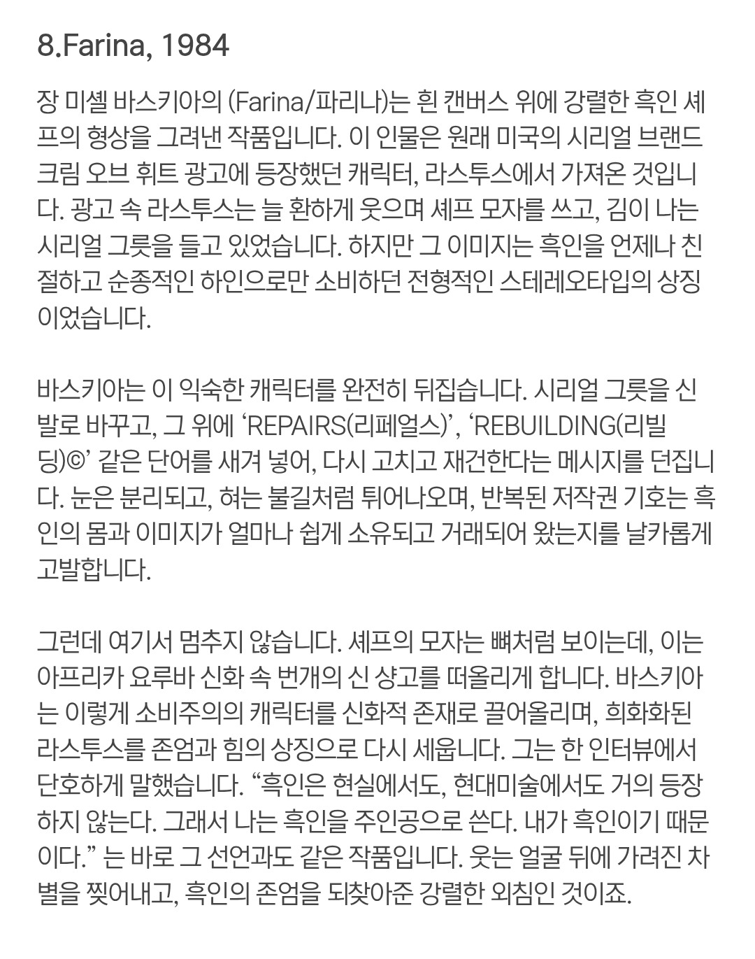 이 지점에서 우리는 바스키아를 떠올릴 수 있습니다.