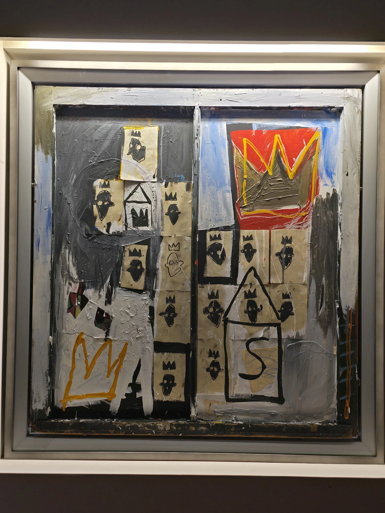 바스키아의 마지막 시기 작품들은 화면을 가득 채우거나 극도로 비워내는 방식을 보여주는 양극단을 오갔다.