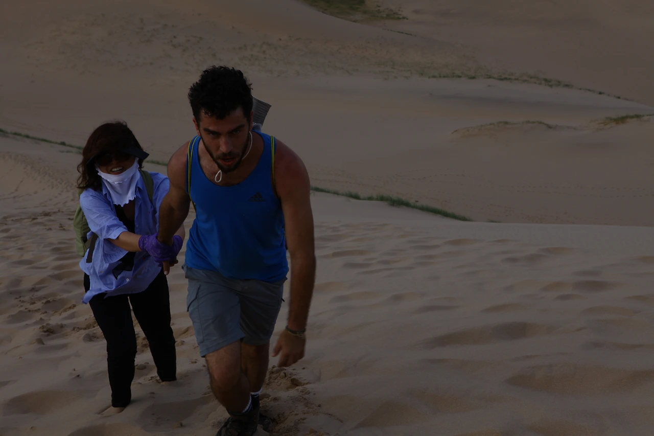 중간쯤 오르다 체력이 바닥나 모래 산에