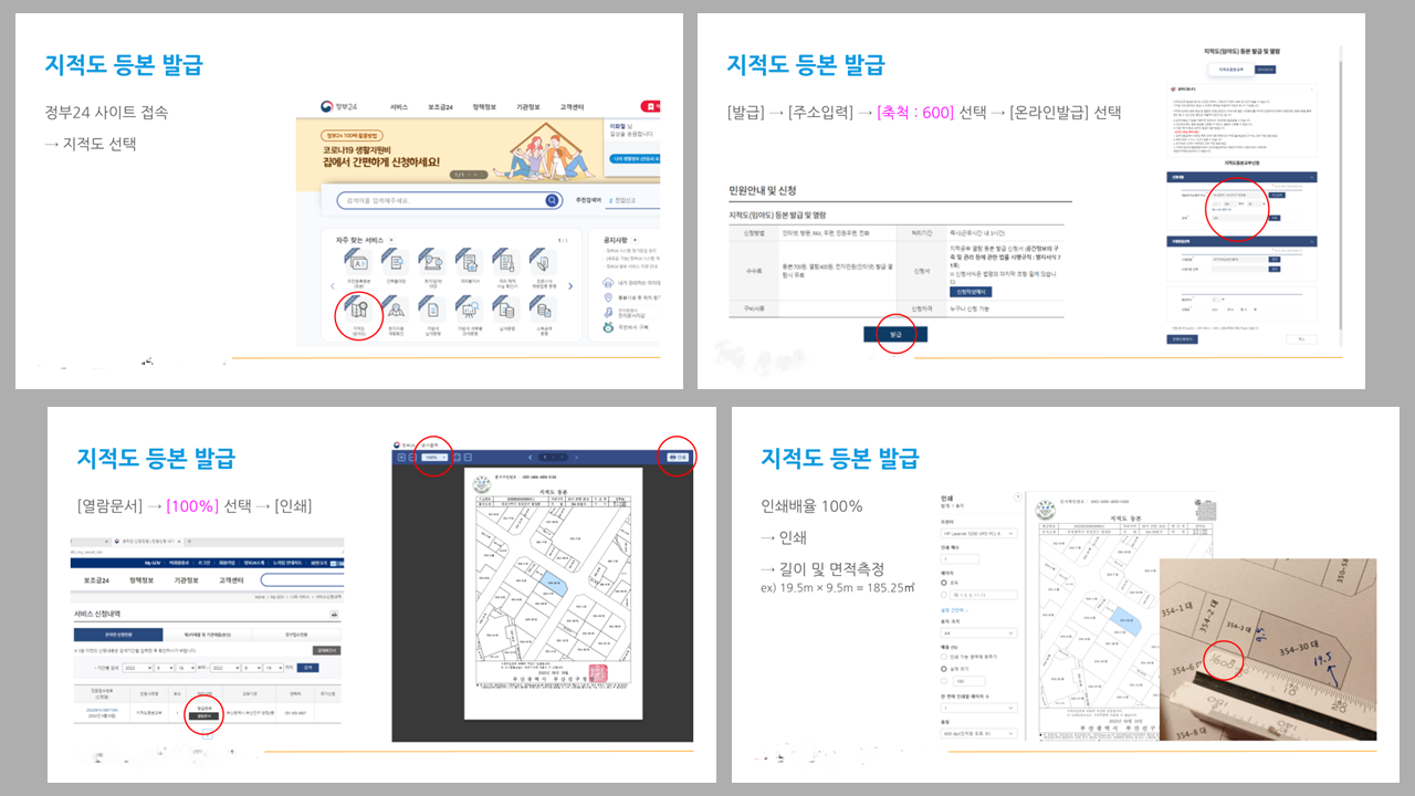 아래는 주택설계 교과목에서 지적도 등본을 발급받고 활용하는 방법에 대한 가이드라인이다. 아주 디테일하게 만들었다. 혹자는 이렇게까지 디테일하게 만들어야 하는가, 하고 의문을 제기하겠지만, 앞서도 말했듯이 막연하게 1/600축척으로 지적도를 발급받으라고만 한다면 아마 10% 정도 학생만 수행하지 않을까 싶다.