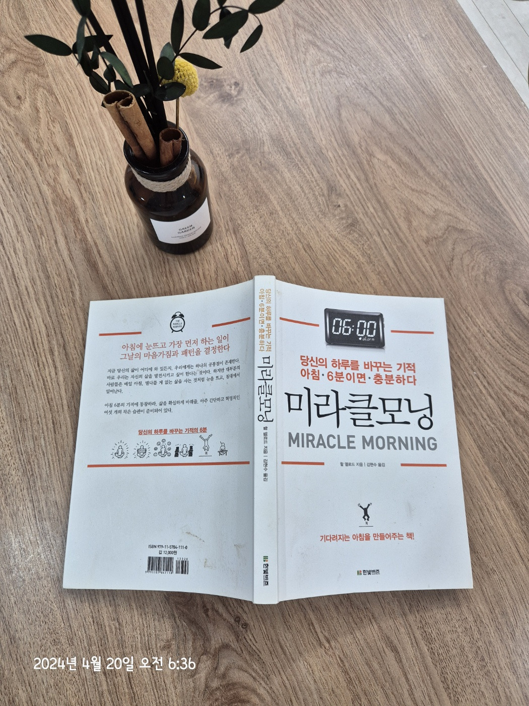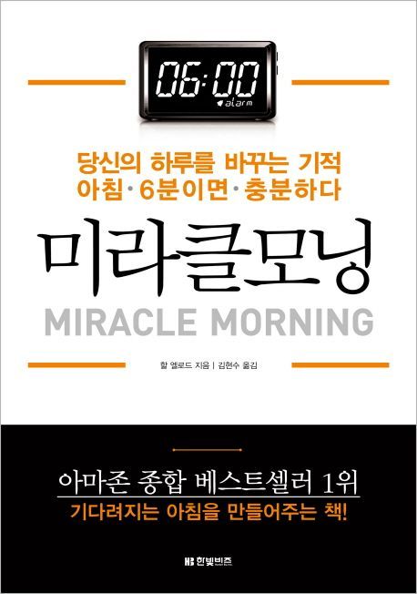 미라클모닝: ( M i r a c l e M o r n i n g ). 아침 시간을 활용하여 자기 계발에 맞는 것을 의미하는 말. 직역하면 ' 기적의 아침 ' 이 되고 , 할 엘로드(저자)가 제창한 자신을 성장 시키는 아침의 루틴이다.