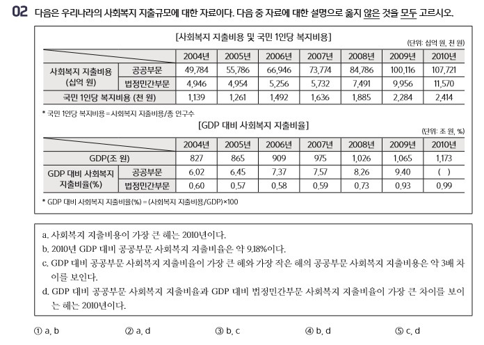 a. 2010년의 사회지출 복지비용