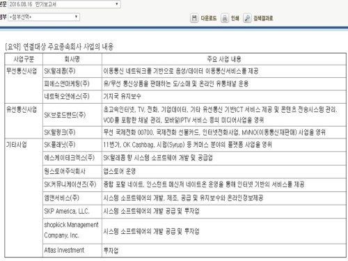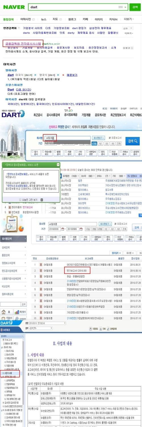 위의 순서는 [ dart → SK텔레콤 검색 → '반기보고서' 클릭 → '사업의 내용' 클릭]