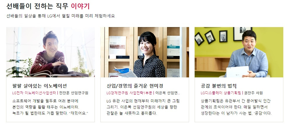 두 번째는 '기업블로그'이다. 기업블로그는 채용사이트와 달라서, 채용사이트는 인사팀에서 운영하지만 기업블로그는 홍보팀에서 운영하는 경우가 많다. 대개의 경우 인사팀이나 홍보팀 둘 다 자기들 직무 외에는 본인도 잘 모른다는 게 똑같지만, 홍보팀은 보다 날 것의 살아있는 인터뷰를 실어줄 때가 많다.
