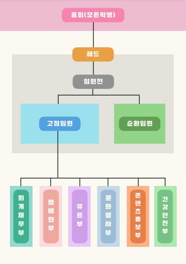 잘해보려다 지친 10명이 모여 ‘같이 배우는 학생인데, 왜 우리만 이런 문제를 끙끙 앓아야 할까. 함께 고민하고 해결할 수는 없을까?’라며 나누었던 대화를 시작으로 사회시간에 배웠던 입법부, 사법부, 행정부를 응용해 학생조직을 만들었습니다. 얼마나 급했는지 총회의도 열지 않고, 누구의 피드백도 받지 않고 한 명 한 명 찾아가 조직 참여를 설득했습니다. 학생조직이 갖춰진 지금 생각해보면 말도 안 되는 이야기입니다. 조직이 생긴 후 우리의 갈등은 더욱 깊어졌습니다. 모두의 공식적인 동의를 받지 않은 이상한 권한이 생겨났으니까요.
