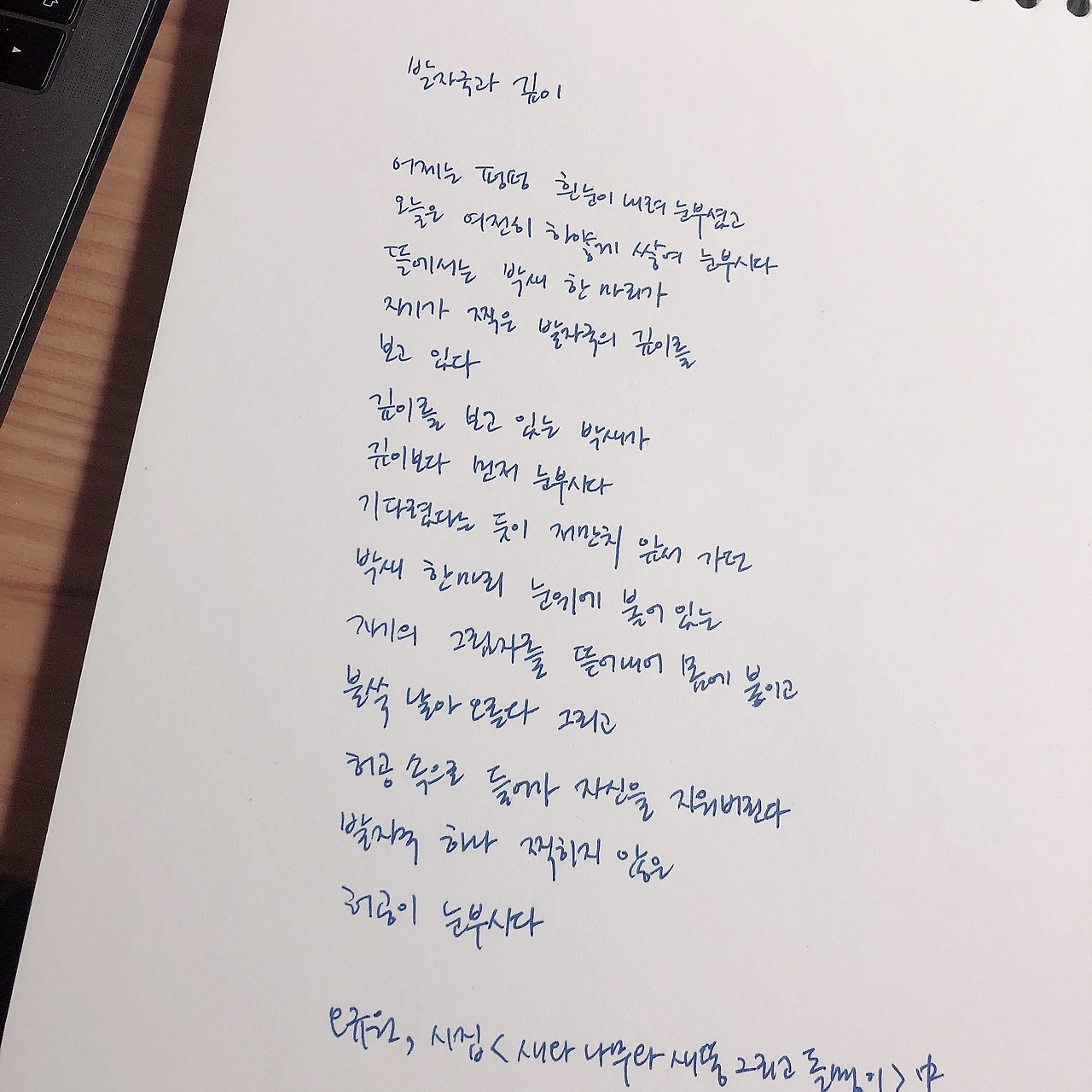 오규원의 시에는 찰나의 결이 담겨있다. 죽음과 소멸에 이르는 시간이고 침묵의 시간이다. 우리는 열심히 살아가지만, 멈추지 않고 끊임없이 소멸한다. 하지만 그 시간들도 순간은 눈부신 법이다.