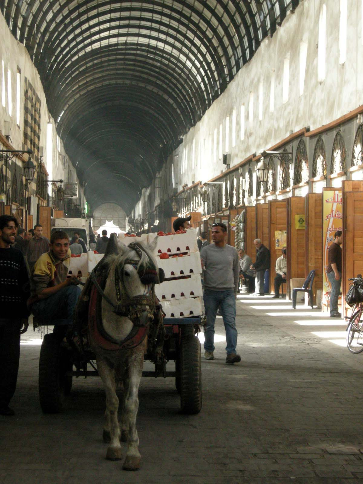 시장에는 노새와 마차가 거닐고 사람들의 활기가 넘쳐났다. 중동의 향신료와 먹거리들을 보는 것만으로도 하마디야는 매력적이었다. 한 가지 신기한 건 야한 여성 속옷을 파는 가게들이 많다는 것. 다시 한번 시리아를 새롭게 알게 된 것 같다.
