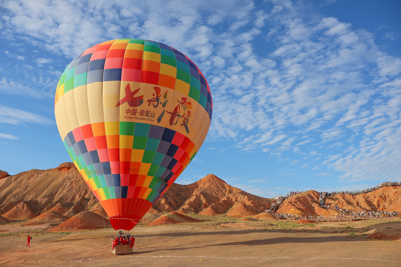 칠채산은 이름 그대로 일곱가지 색깔을 띠는 산이다. 침식, 퇴적 등 오로지 자연의 움직임만으로 만들어졌다.