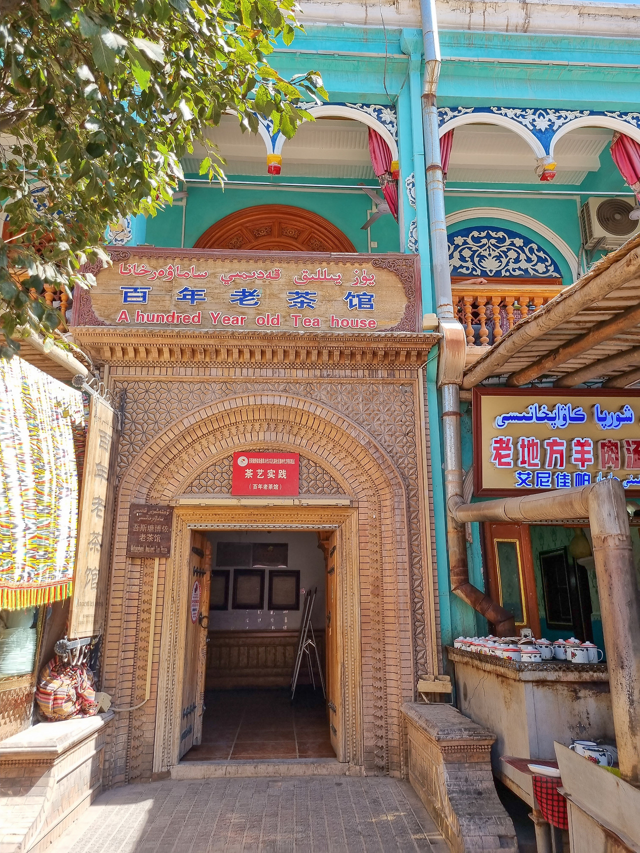 찻집에서 춤을 춘다는게 어색하지만, 카슈가르의 찻집은 그런 곳이다. 역사가 100년이 넘은 <백년찻집(百年茶馆)>이 대표적이다. 차관 내부는 화려한 문양의 카페트가 깔려있고 다양한 크기의 좌식테이블이 놓여있다. 특징이라면 옆 사람의 대화가 들릴 정도로 테이블 가격이 좁다는 점이다. 위구르인들에게 찻집은 사교의 장이기 때문이다. 이곳에서는 차를 마시면서 누구나 친구가 된다. 프라이버시를 중시하는 요즘 카페와 비교하면 신기하기만 하다.