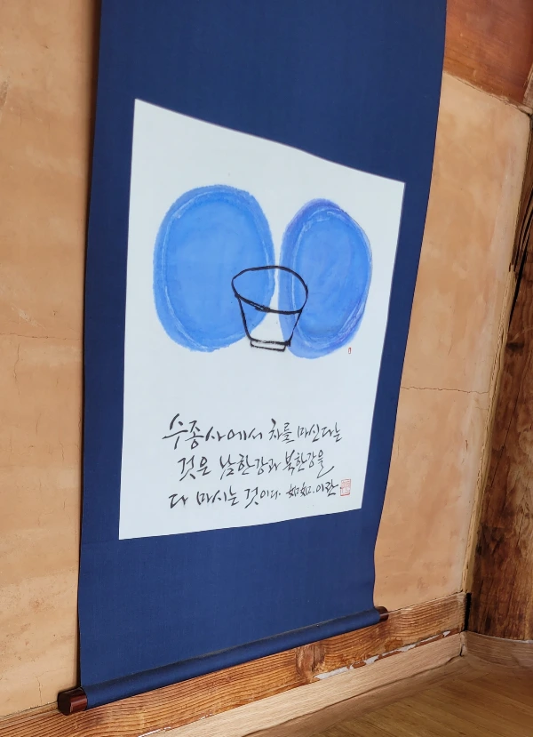 "수종사에서 차를 마시면, 북한강과 남한강 물을 다 마시는 것"이라는 그림이 걸려 있다.