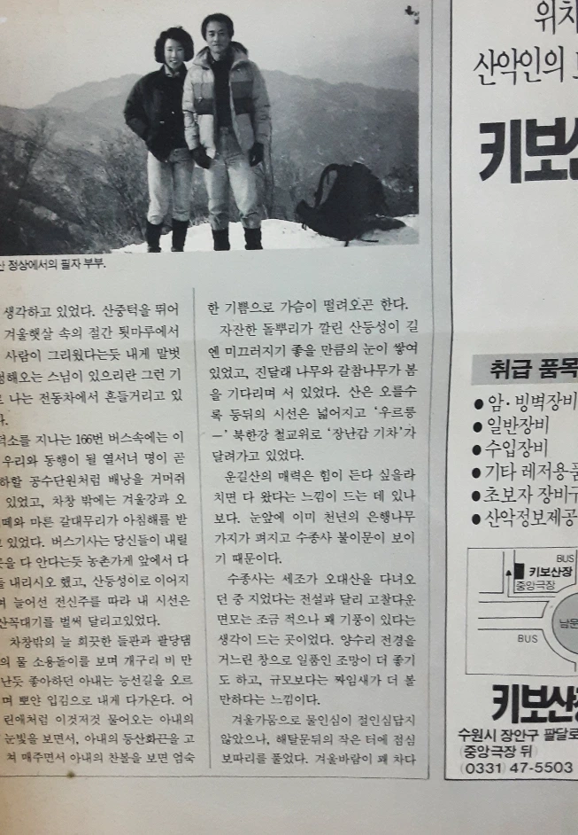 조선일보 刊 "월간 산" 잡지(1987년 2월?)에
