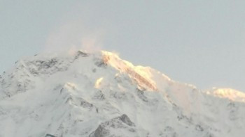 뒤를 돌아본다. 발걸음은 앞으로, 마음의 눈은 뒤로…. 잘 구분이 안되지만 안나 남봉, 히운추리에 햇 살이 퍼진다.