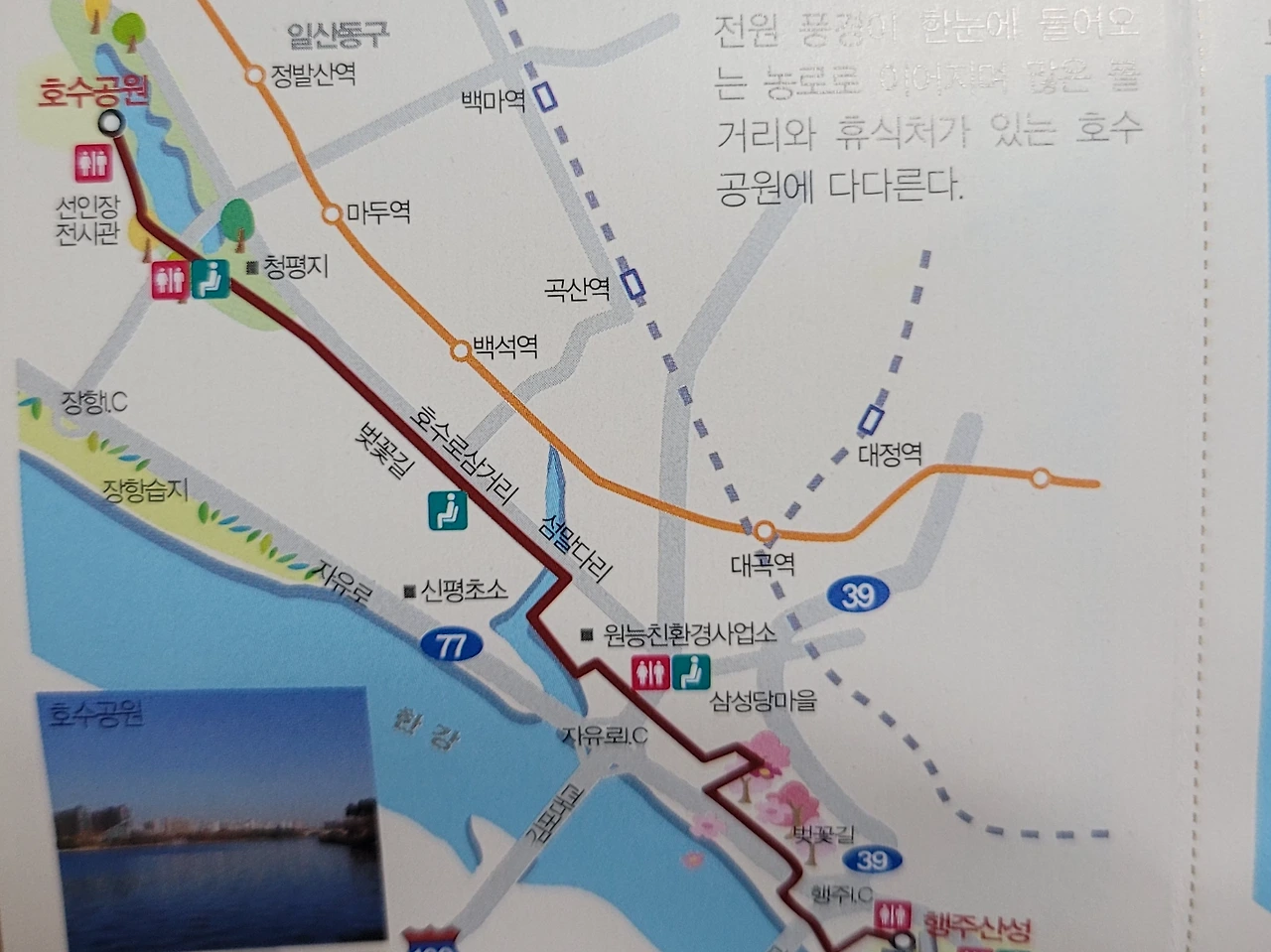 그 중 진행 방향을 잠시 벗어나 호수공원과 행주 산성으로 이어지는