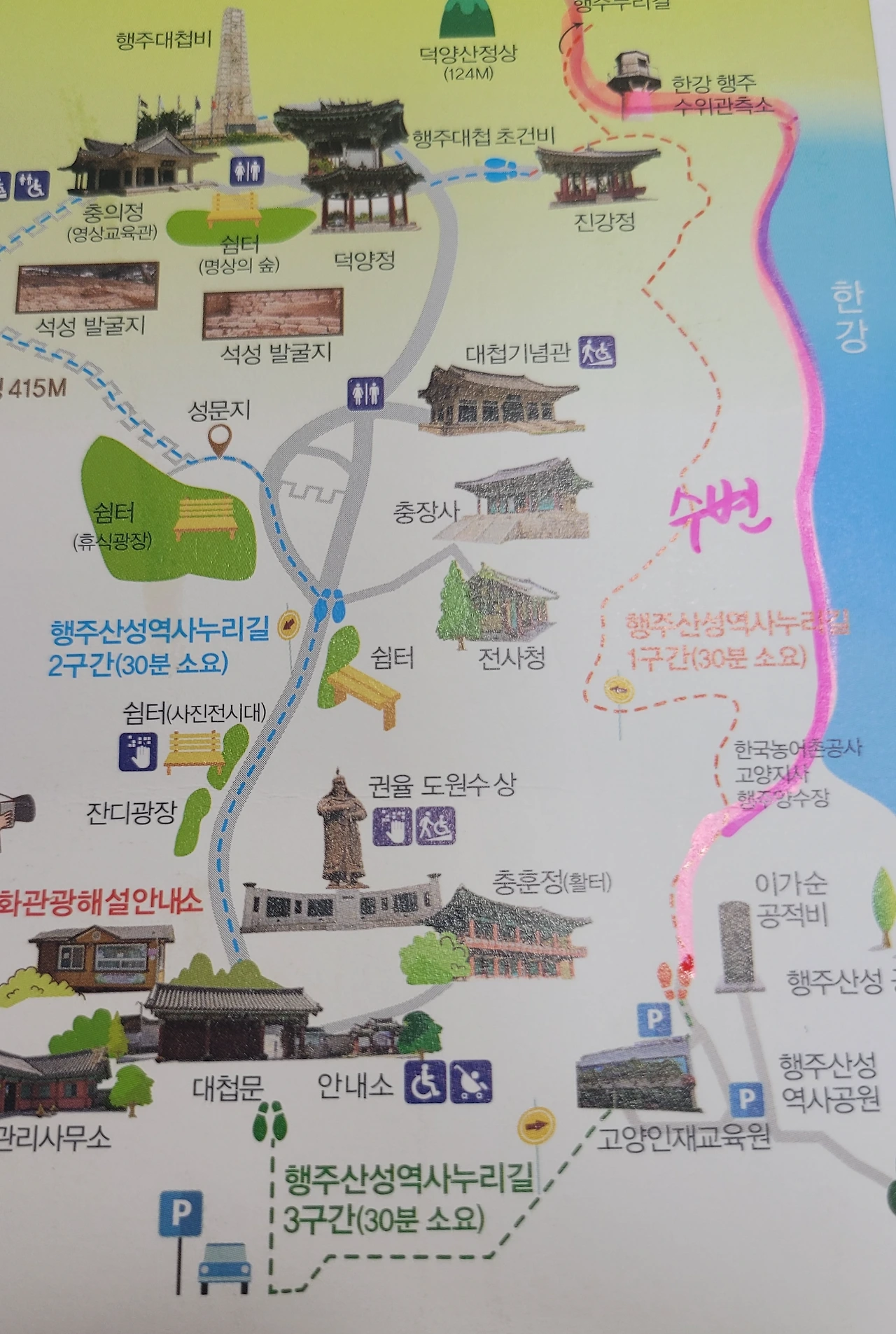 행주 산성을 올라가면 된다.