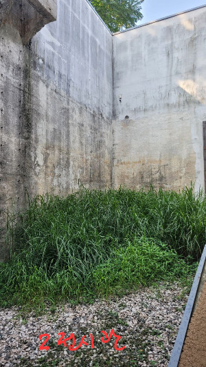 용도 폐기한 상수도 가압장의 큰 시멘트 물탱크를
