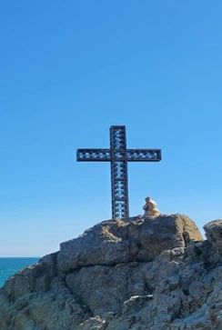 십자가로 바다를 보고 있습니다.