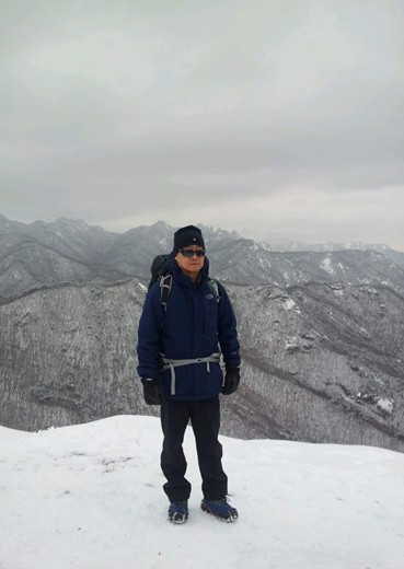 어느 겨울, 눈 쌓인 도봉, 북한산의 굽이치는 능선을 배경삼아 폼을 재 보았다.
