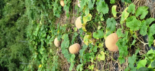 강화도 옆집 밭의 호박덩쿨에 스무개 쯤의 호박이 주렁주렁이다.