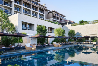 코랄 블루색의 바다가 펼쳐지는 호텔, 탁 트인 뷰를 바라보며 낭만적 휴식