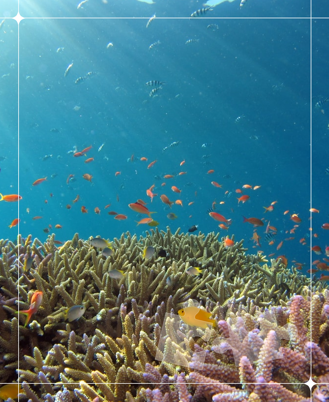 괌은 가산호벽에 쌓여있어 깨끗한 물과 예쁜 산호초로 유명해요. 비키니 섬에서 돌고래도 보고 바다 친구들과 스노클링도 즐겨보세요.