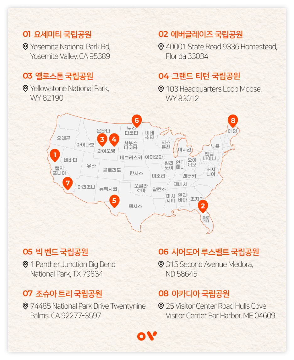 ‘광활한 대자연으로, 미국 국립 공원 TOP 8’ 모음입니다.