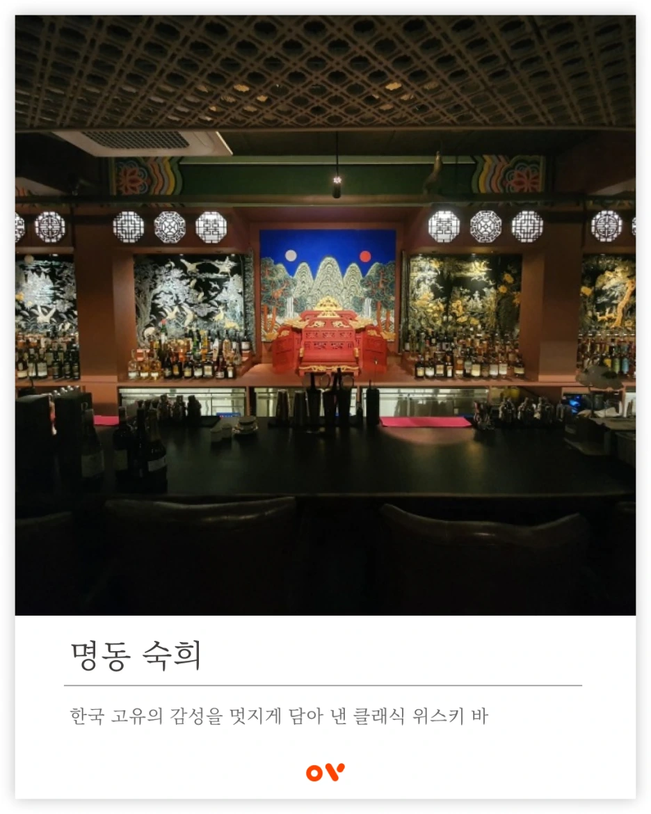 명동에 위치한 클래식 위스키 바 ‘명동 숙희'는 을지로 ‘숙희'의 2호점으로,