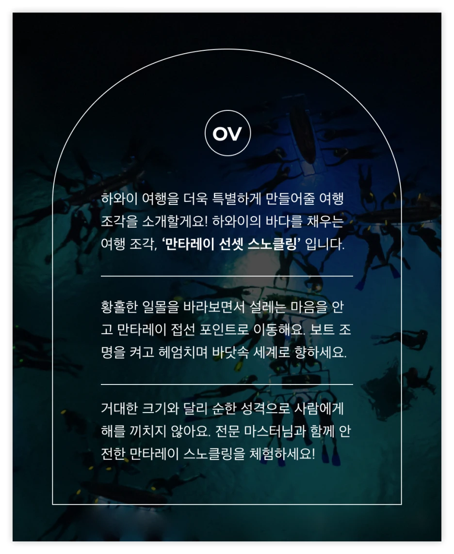 하와이의 바다를 채우는 여행 조각, ‘만타레이 선셋 스노클링’ 입니다.