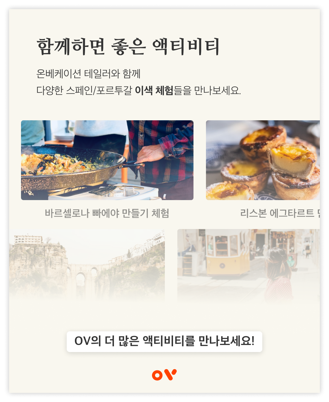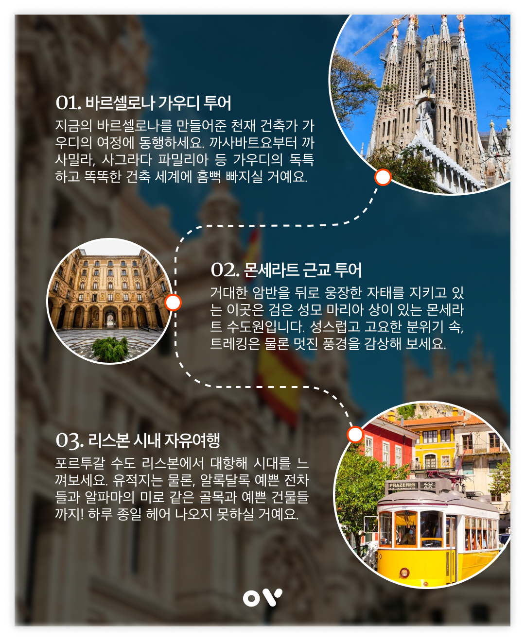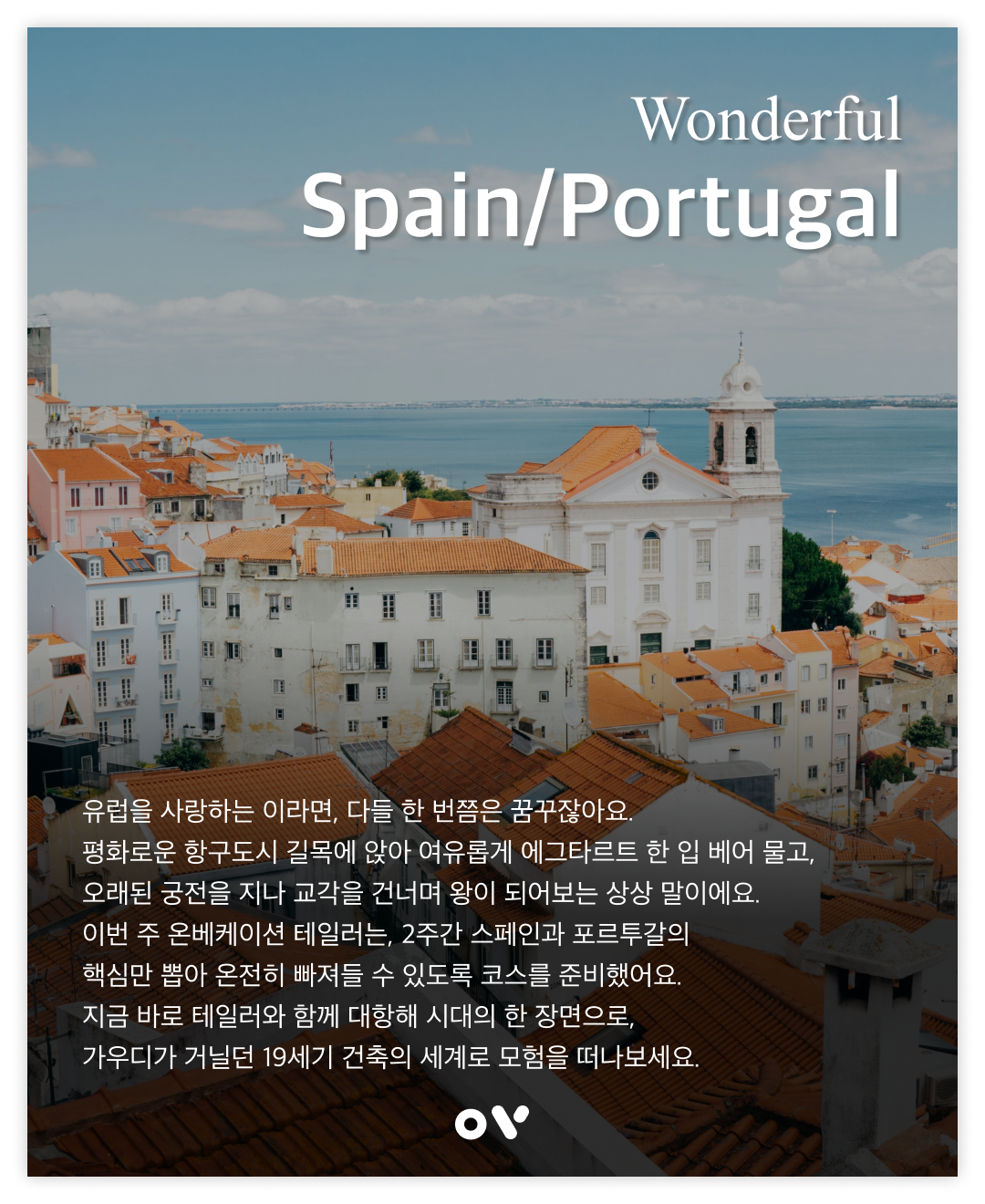 이번 주 온베케이션 테일러는, 2주간 스페인과 포르투갈의 핵심만 뽑아 온전히 빠져들 수 있도록 코스를 준비했어요.