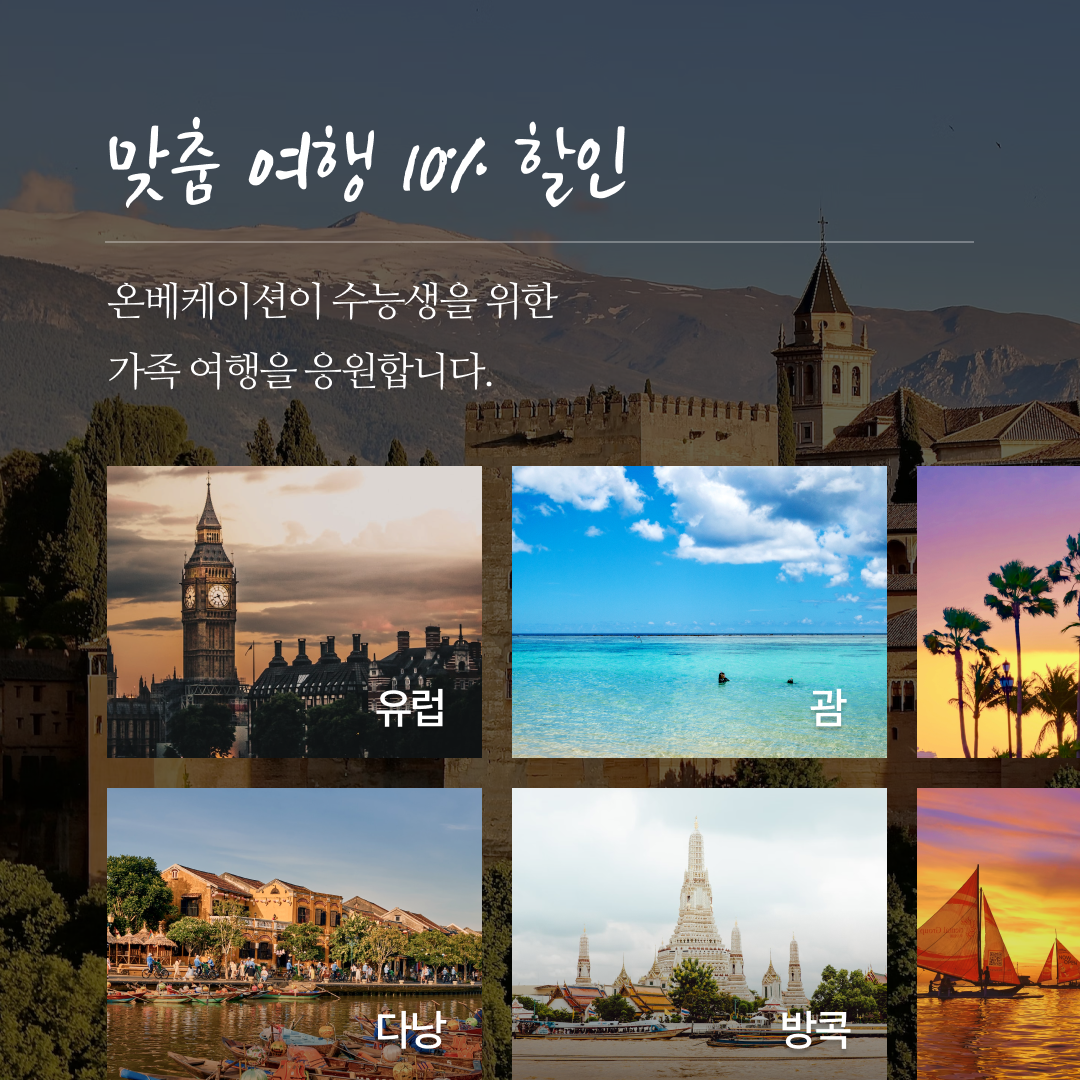 맞춤 여행 상담 받고 수능생 가족 할인 혜택까지 받아가세요 �
