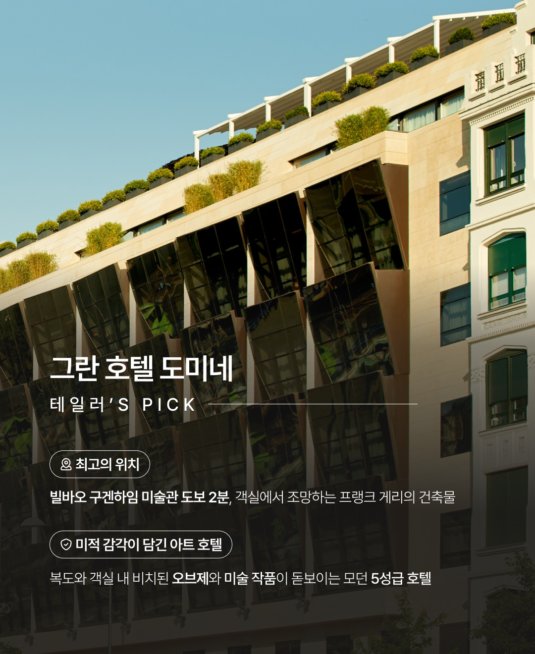 - 빌바오 구겐하임미술관 도보 2분, 객실에서 조망하는 프랭크 게리의 건축물