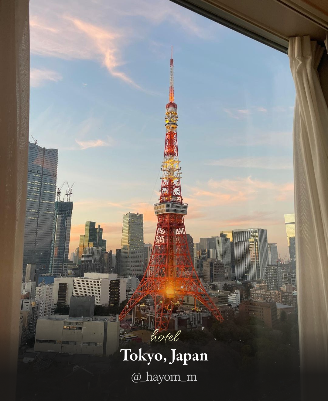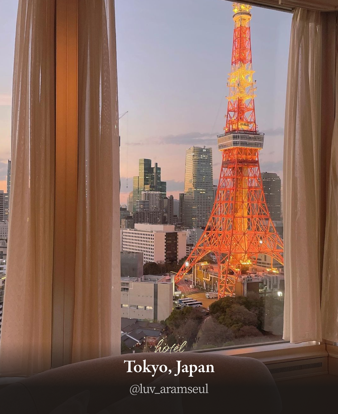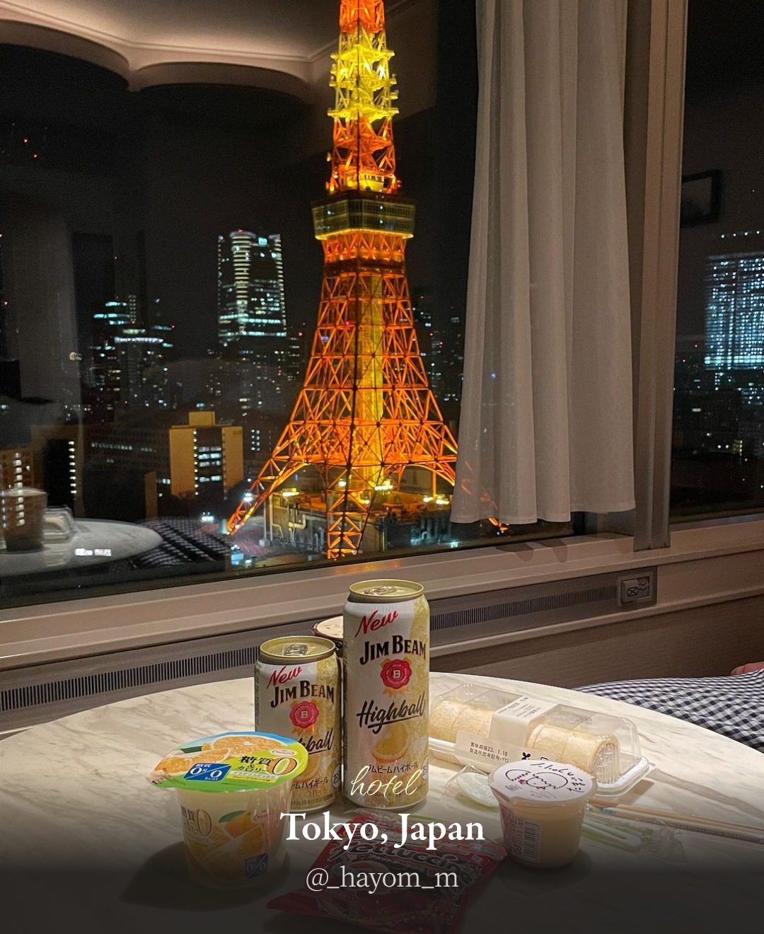 밤에는 빨강 주황 빛으로 밤을 밝게 비추는 도쿄타워를 바라보며