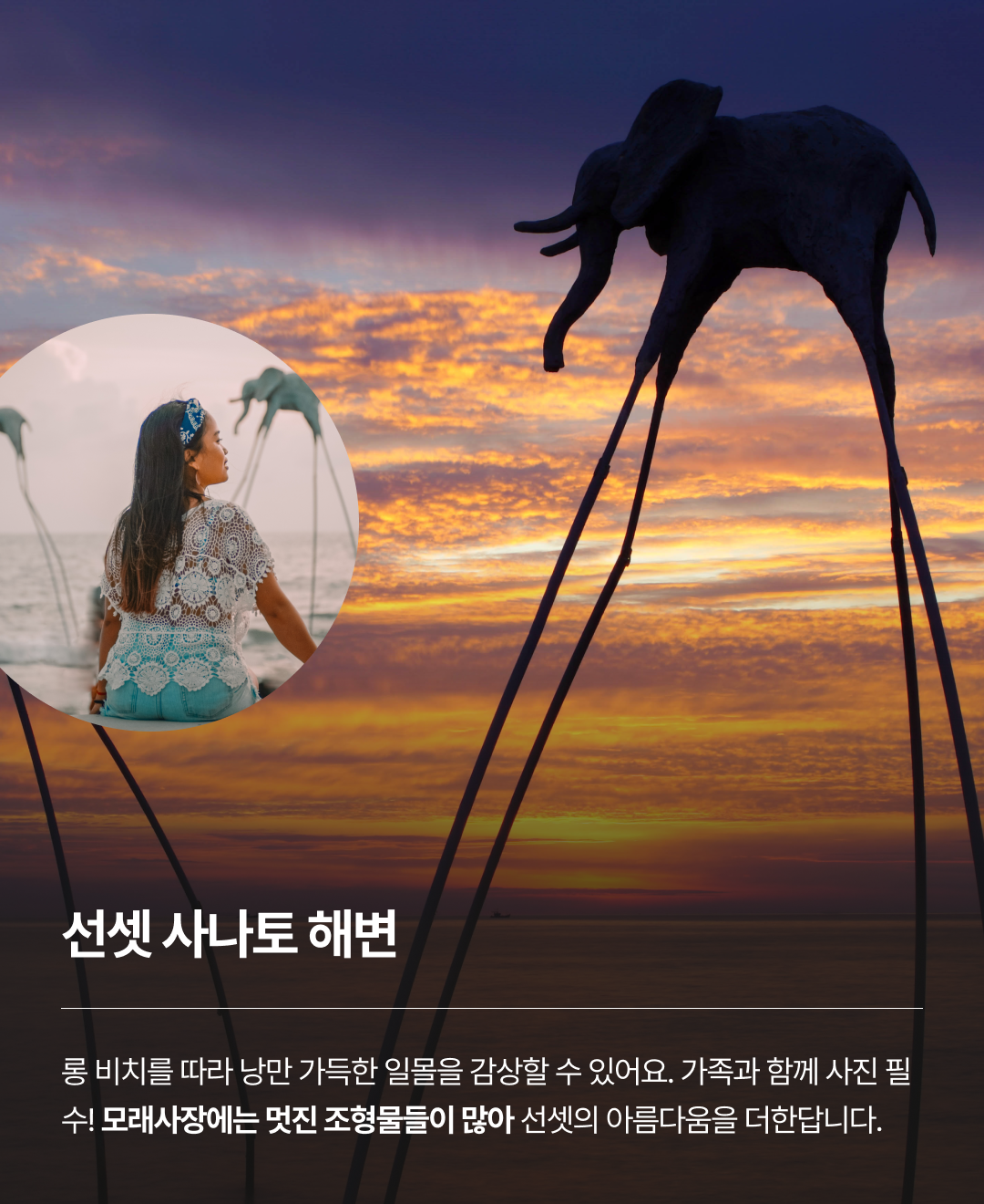 모래사장에는 멋진 조형물들이 많아 선셋의 아름다움을 더한답니다.