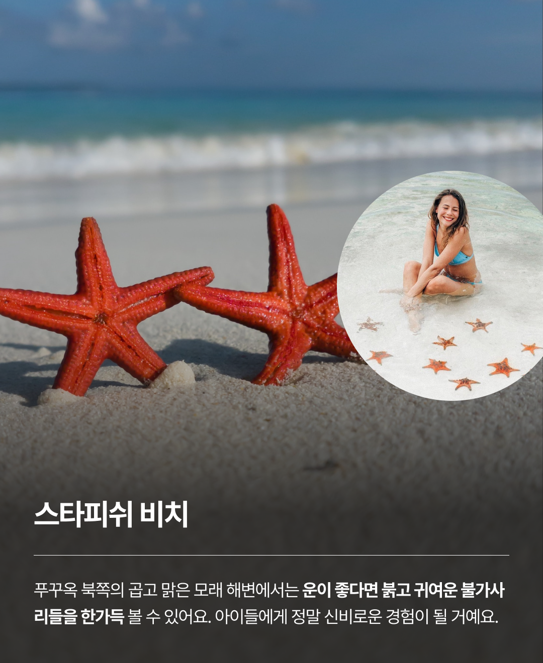 푸꾸옥 북쪽의 곱고 맑은 모래 해변에서는 운이 좋다면 붉고 귀여운 불가사리들을 한가득 볼 수 있어요.
