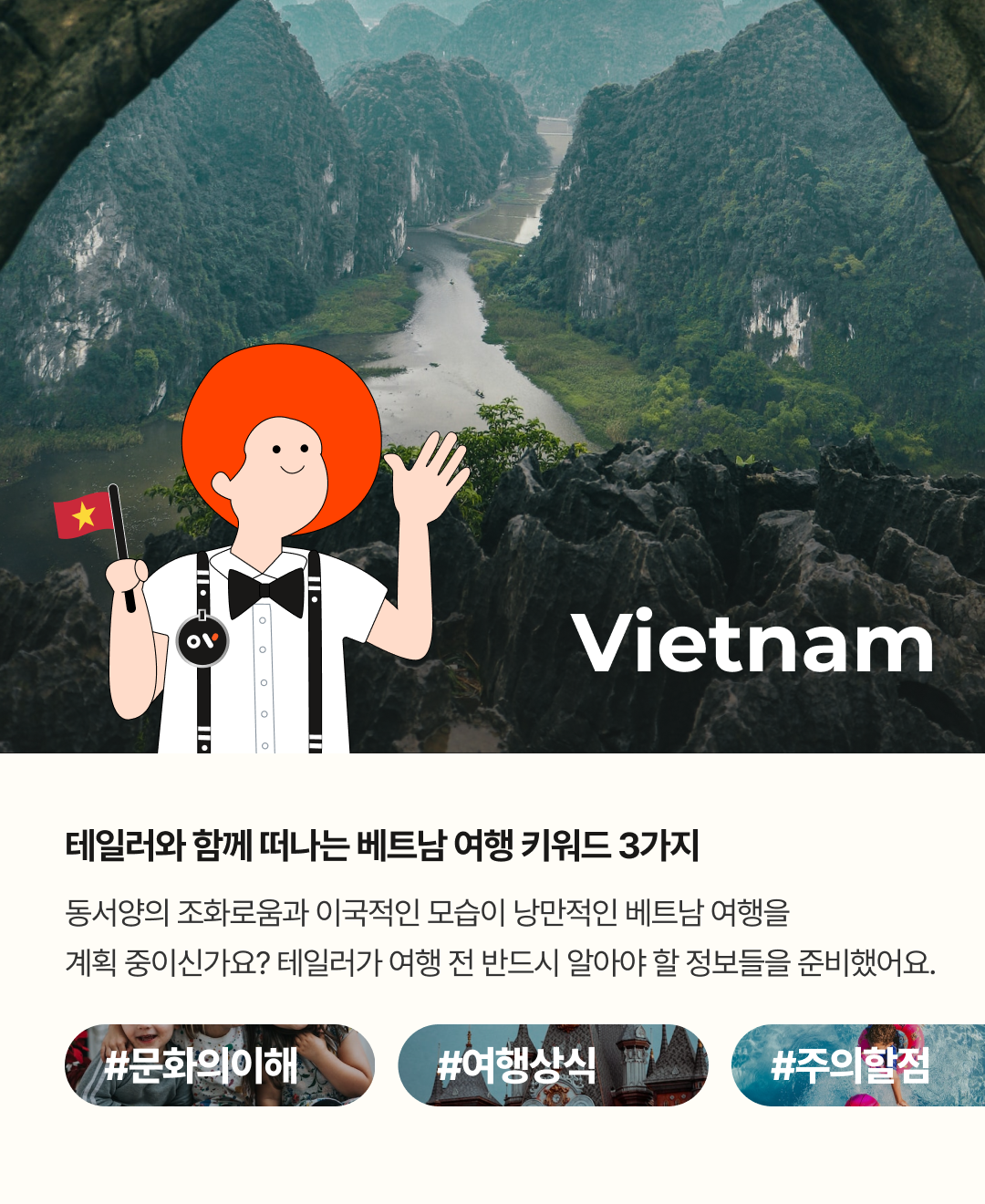 테일러와 함께 베트남 여행 전 반드시 알아야 할 정보를 확인하고, 나만의 #베트남여행 을 만들어보세요! 카카오톡 #온베케이션 에서 여행자님을 기다리고 있을게요!